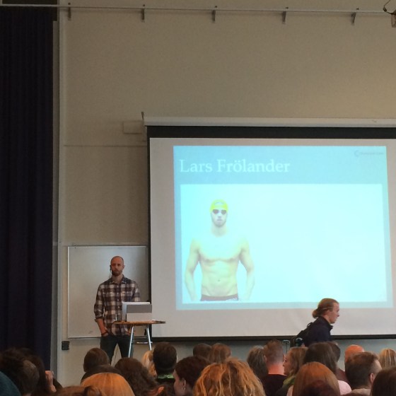 Inte ofta, men nu har vi varit på föredrag, av en världsmästare i sim, Lars Frölander. Han är vegan och det var den resan han berättade om.