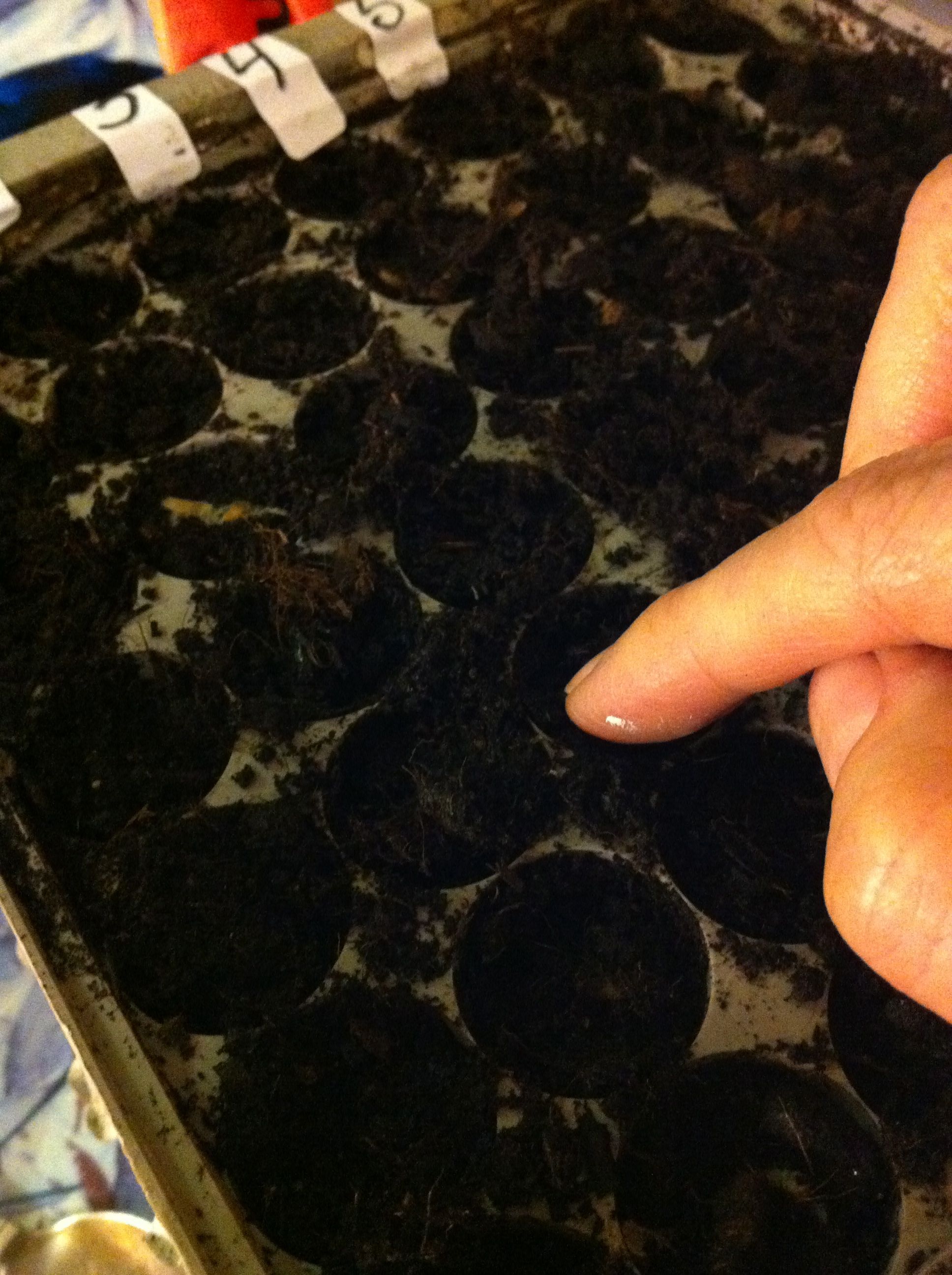 Skönt att sitta på huk och sätta morot och rödbetsfröer ( o lite annat). Nära jorden är bra för själen. Det gäller bara att se till att vattna på den svarta jorden – fåglarna älskar att bada i torr, ogräsfri jord och då flyger alla nysatta fröer huller om buller.