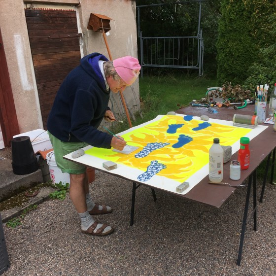 Det är Ganga o Svetlana som har arrangerat skyltfönstret. Denna gång, helt krasst, enkelt utan extra rekvisita. Förvånat mottar vi hyllningarna,- bästa skyltning. Så kan det gå, när man inte anstränger sig. Så gör vi lite extra reklam för ännu en Rurik-bonad: (fötterna) och för Gangas gouache: ”vem” med alla huvuden.