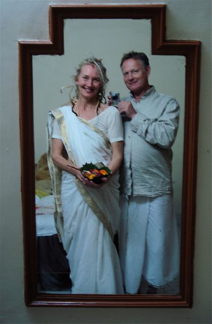 Det är då vi plötsligt minns -vi har bröllopsdag! Fem år. vi åkte till Rishikesh i Indien. Det var fullmåne över Ganges och vi doppade oss gemensamt i min namne, den stora Ganga.