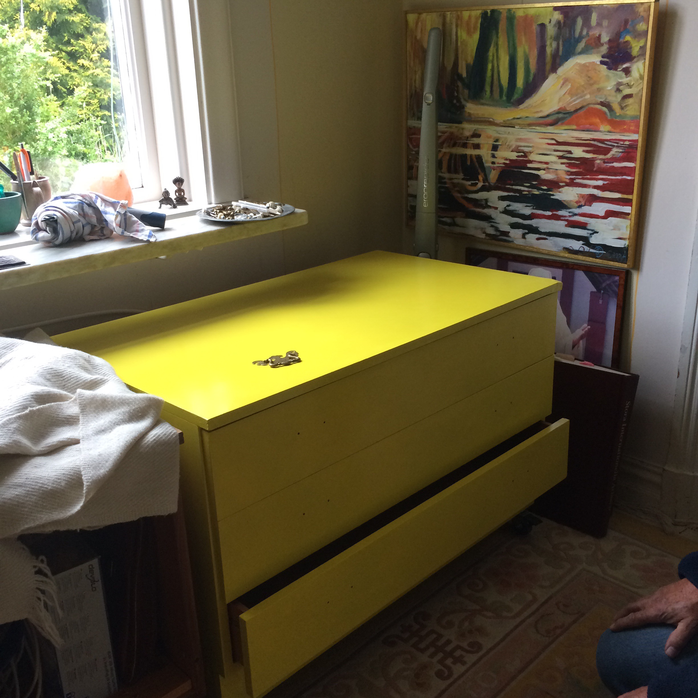 Det vara bara att sätta igång , nu ska den på plats igen i sina nya gula kläder.