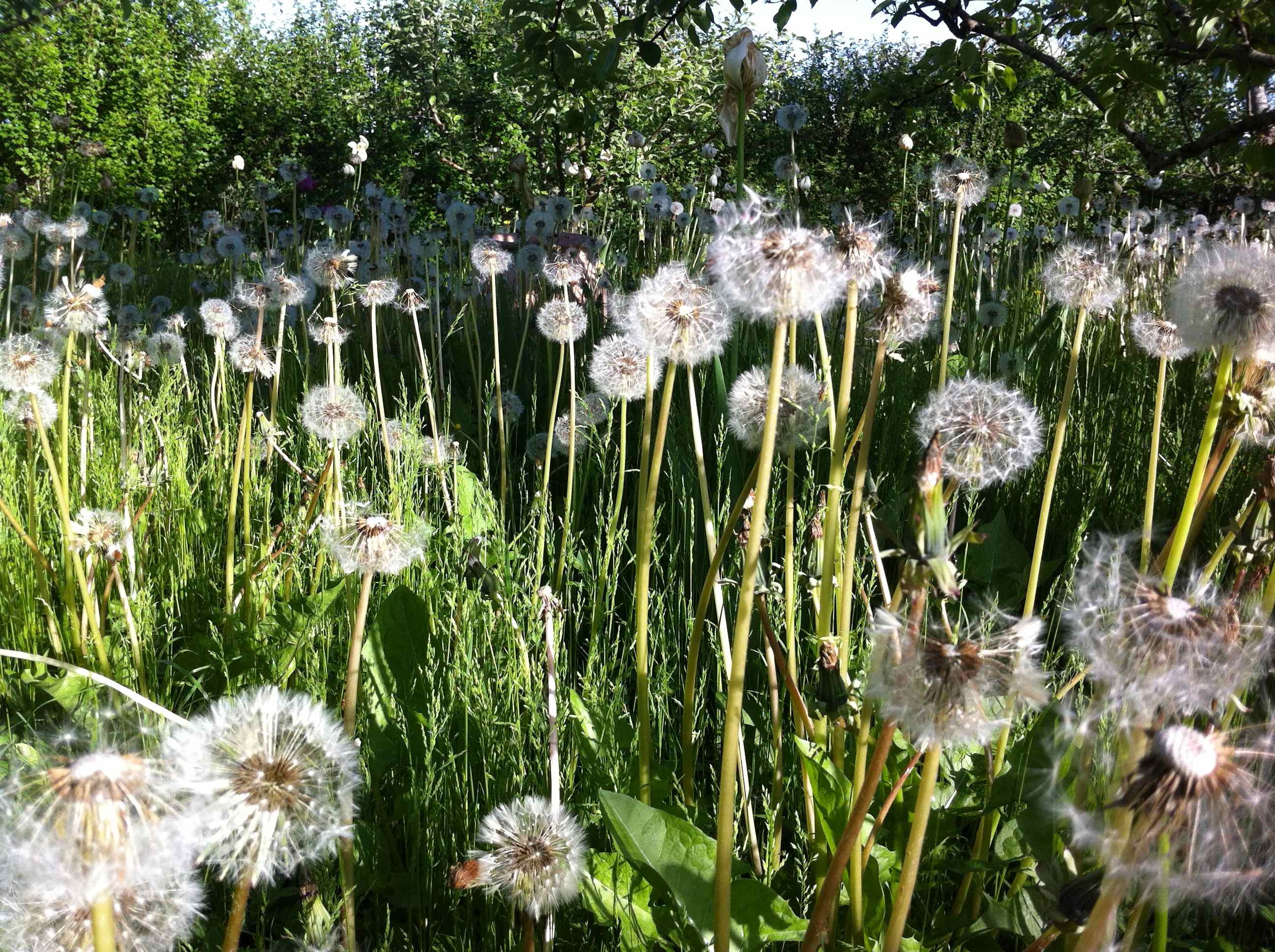 Vi är ju väldigt förtjusta i vår trädgård. Den lever väldigt mycket sitt eget liv. visst, där är ordning och reda och till och med rabatter, men vi är inga som detaljstyr. Med åren är det kul att märka hur mycket växter promenerar runt själva. Plötsligt bara de finns på nya ställen. vissa breder ut sig alldeles kolossalt. vi accepterar det. vi till och med gillar de flesta ogräs och nässlorna plockar vi och gör grönsmothie av.