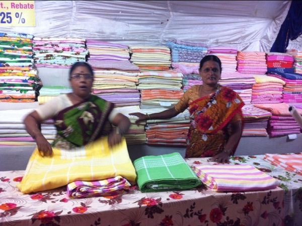 Kökshandukar var väl inte riktigt vad jag tänkt mig att ta med hem, men fina, rutiga, handvävda för 20 rupies , det är under tre kronor stycket. Man tror inte det är sant och jag vet inte om jag ska bli glad för att vi gjort ett kap -eller ledsen för att vävarna får så lite betalt.