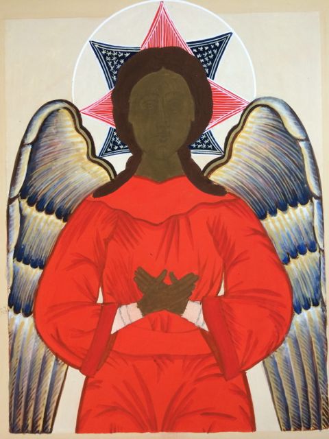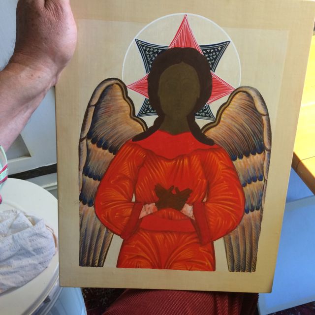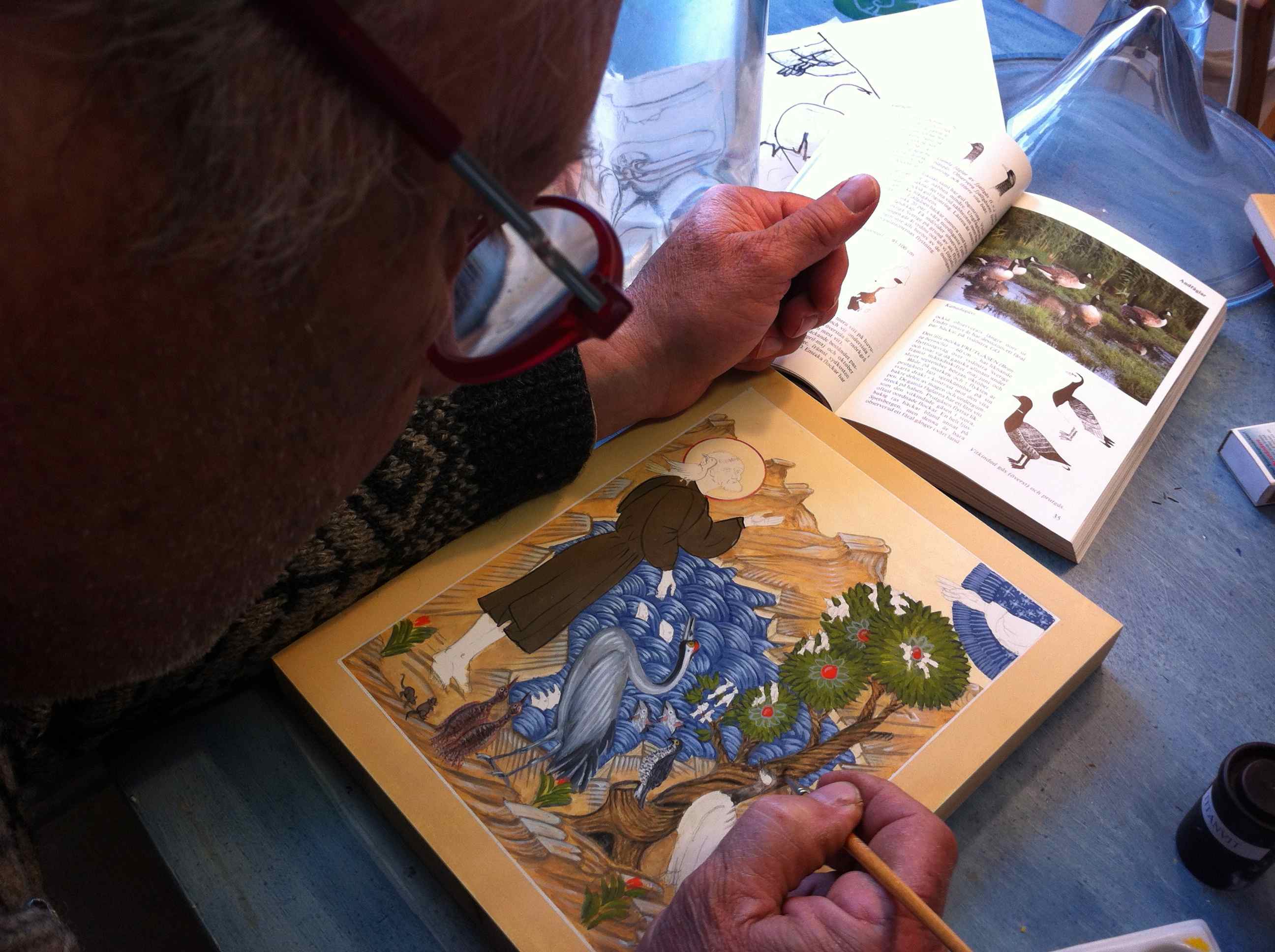 Vi är ju något ohämmade och partiska här på bloggen och vill ju gärna visa fram vårat och ibland kommer andra med av bara farten. Här står nu Ruriks ikon, Franciskus av Assisi och bakom den, är en ”icke perfekt ros” ( kul namn) av Ila Örtlund.