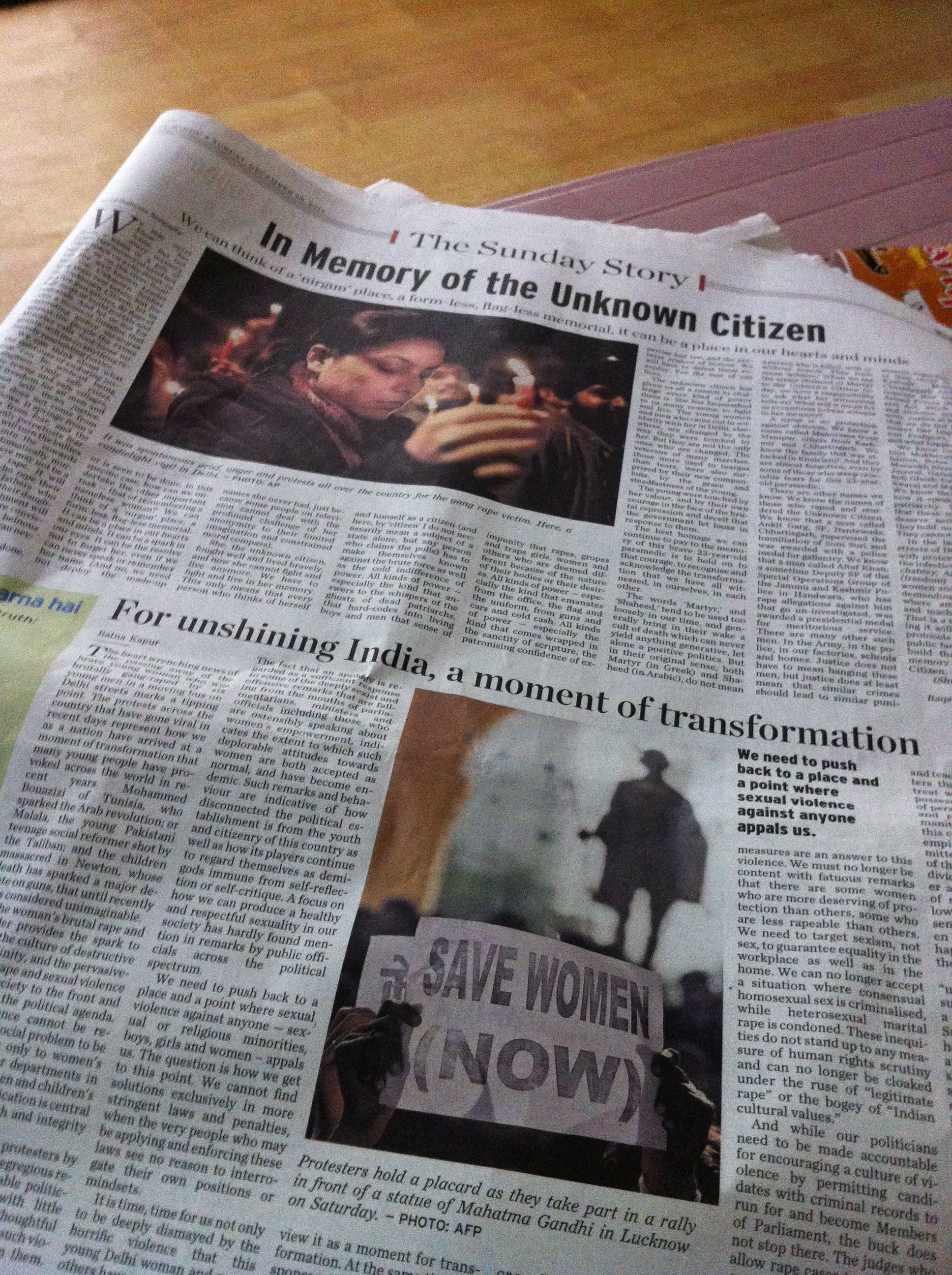 Debatten som rörde om i Indien och som kokade på nyhetssidorna då vi var där, ögnade jag bara försiktigt. Rurik läste och refererade bland. Skit händer överallt tänkte jag, och tidningar vill sälja, så de hänger ut det. Men det är tufft att vara kvinna i Indien och att det blev ett sådant raseri är säkert för att detta var liksom var droppen som fick bägaren att rinna över.