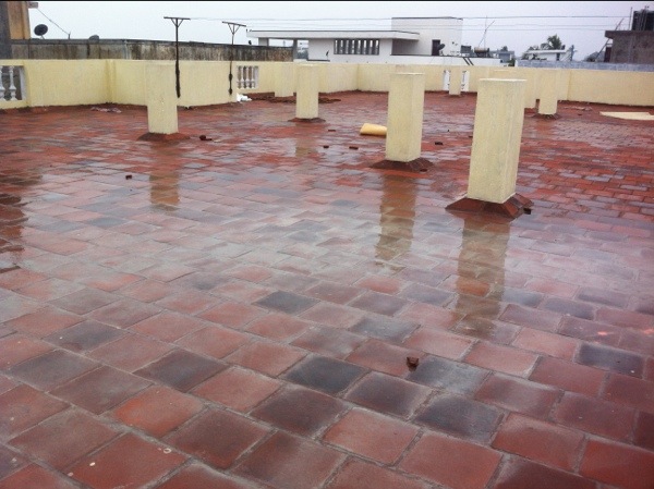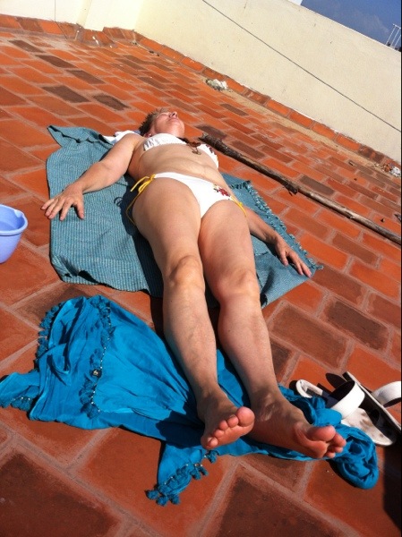 Förvirrat står vi på taket. Va! Regn! Indien har fjäskat med oss hela december.