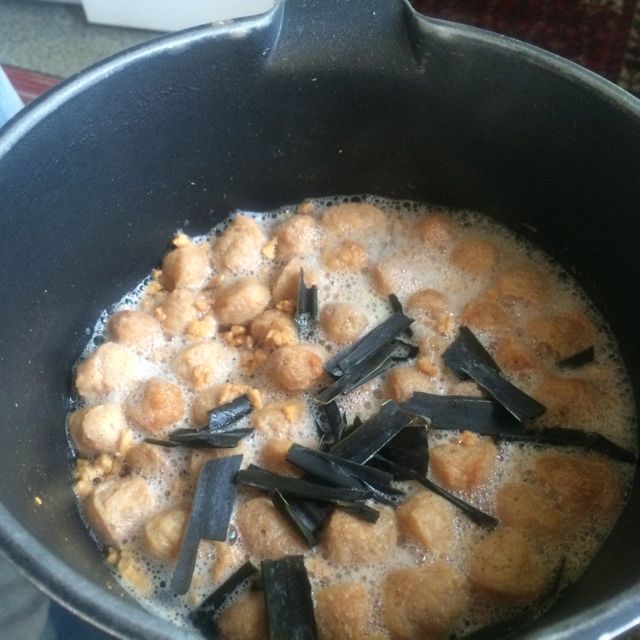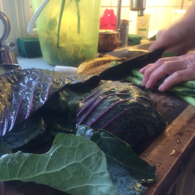 Kål är magiskt (och gott) Men tänk, mitt i vintern går vi ut och plockar in middagen. Vi varvar kålen med lite av vad vi har för tillfället plus sojawadis. Vegetarianens räddning. Torkat sojaprotein i bollar, bara att låta dra en stund i vatten och sen koka med rätt kryddning kan man lura även en inbiten köttätare.