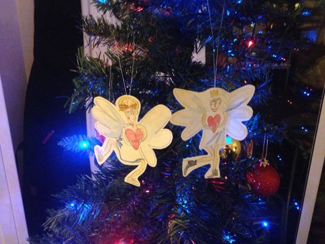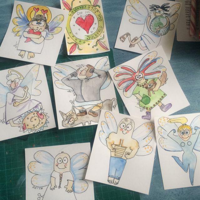 Så här ser ni en del av vår familj. Var och en får en liten bild av sig, att klippa ut o hänga… i granen. Jag gillar den där fokucerade, varma känslan det ger att sitta och teckna till någon. Alla har fått en stund av total odelad uppmärksamhet – och kärlek.