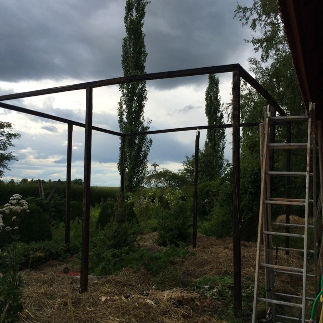 Jag ser Rurik som tar de sista spadtagen i årets kålpalats.Det är ett stort jobb han har gjort med att sätta upp ställning och tält. där inne ska vår kål växa i lugn och ro -utan kålfjärilar.