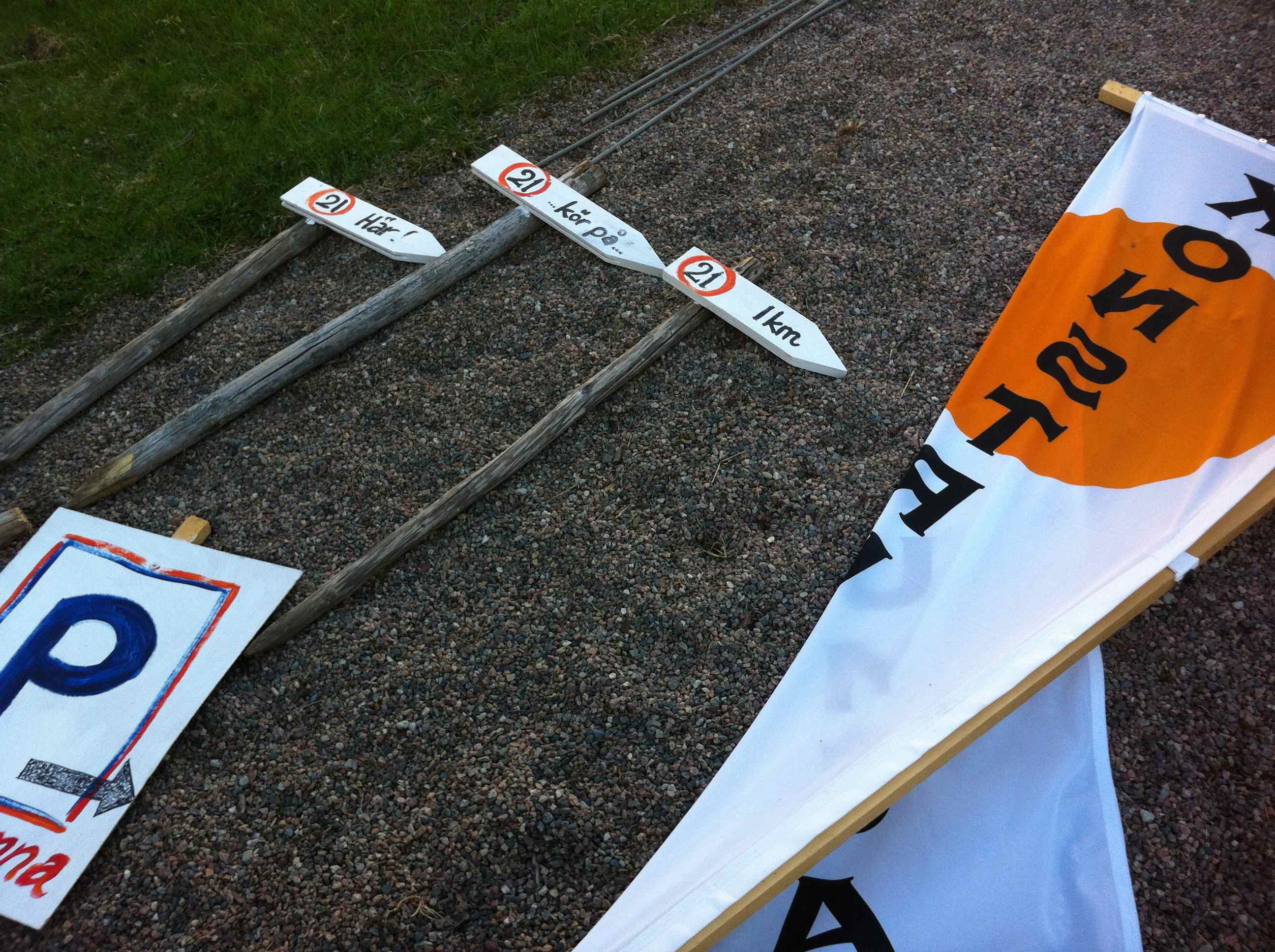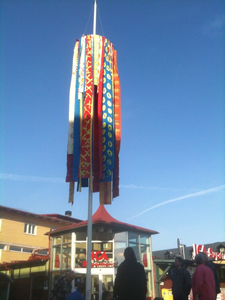 redan igårkväll, sent, kom banderollen upp. Sträckte sig upp mot kvällshimlen.