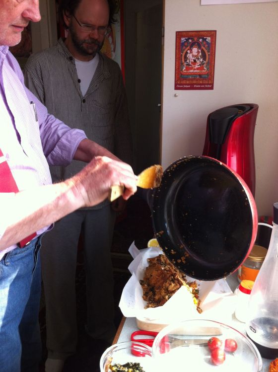 Men innan dess har det varit hacka-frukt-kalas. Frukt, nötter och maskrosor(!) just idag firade vi försommaren med alla maskrosorna (förstekta i olja, curry och salt). Alla ingredienser måste vara framme och klara, för när man väl sätter igång, så är tidsmarginalerna små!