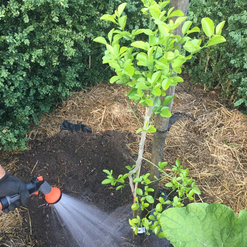 …och vad händer bakom den japanska rot tisteln? Tisteln ska ju inte vara där för evigt och där längst in i hörnet tror vi blir varmt och najs för citronträdet, HÅLL TUMMARNA!