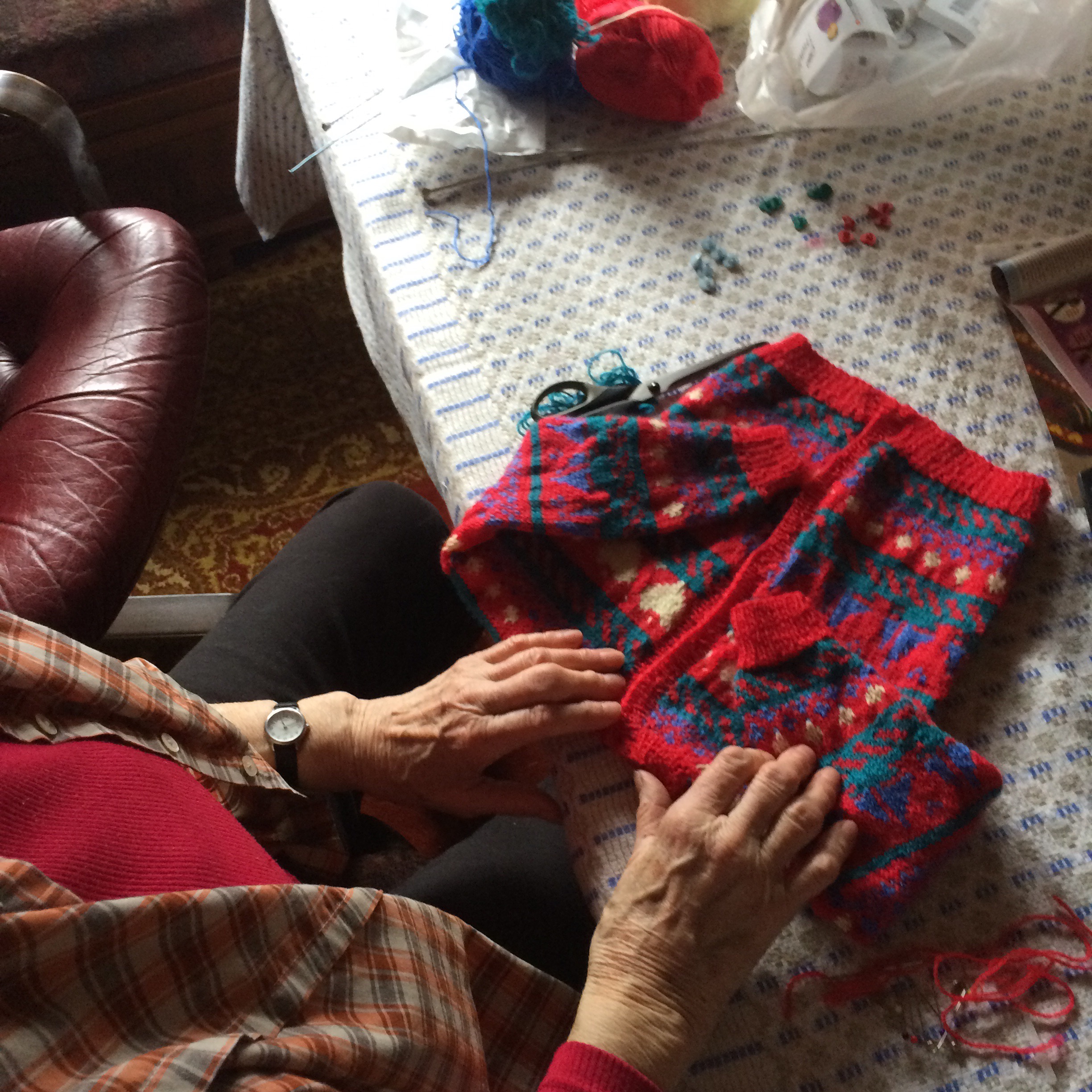 Min mor, mina barns mormor och Elsas(som fyller år idag, den 8mars) farmor. Flinka fingrar och en oändlig kreativitet. Ett nytt barnbarn har satt fart på stickningen! Nu producerad små söta kläder!