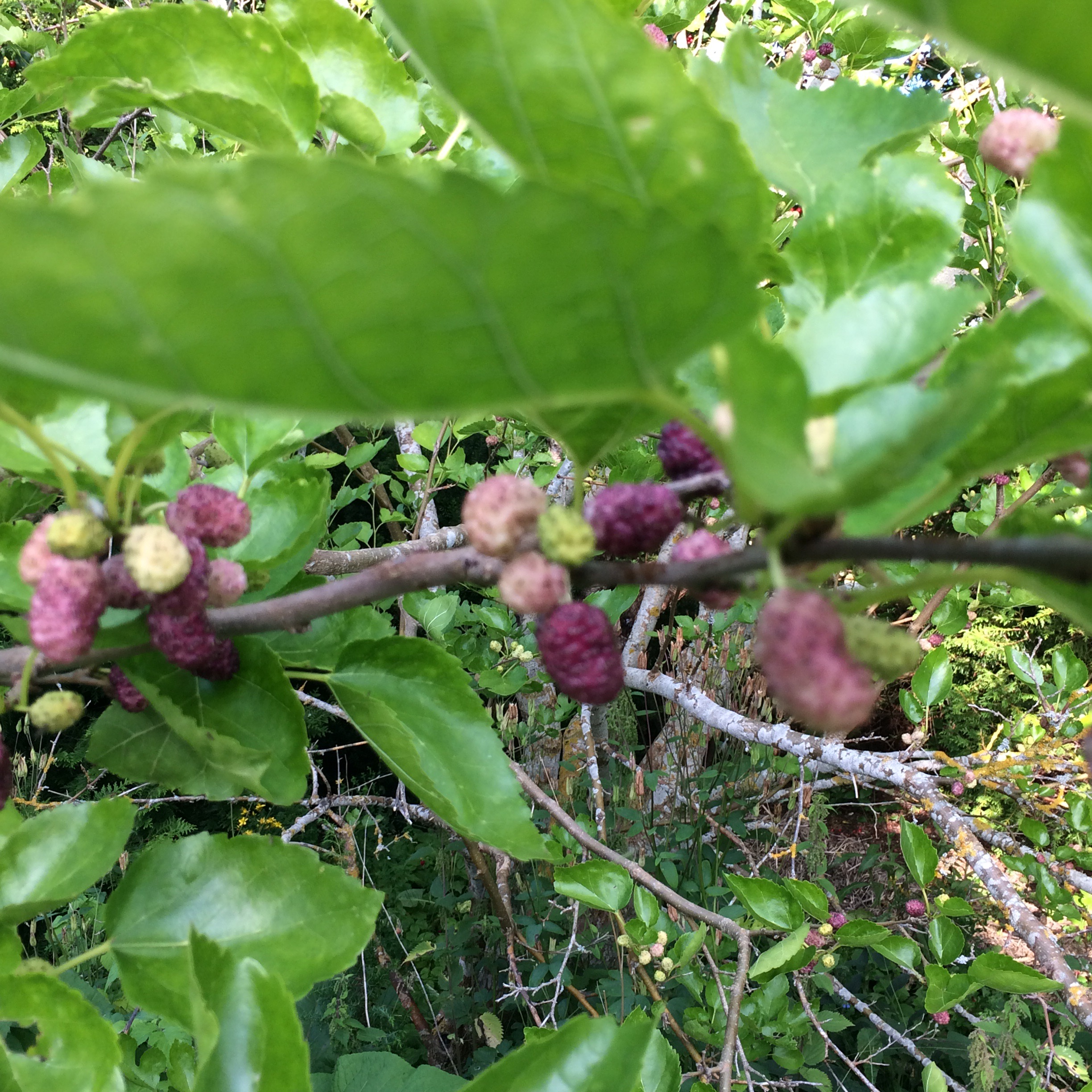 Mullbären, alla träd tycks ha sin egen stil. De svarta är väldigt söta, men små och rädda -de ramlar nästan innan man lyckats plocka dom. En av de vita mullbärsträden, får vit frukt men den får vi aldrig plocka! De har alltid ramlat i förtid. De andra vita mullbärsträdet får svarta ( Hahaha) mullbär. Stora, matiga inte så söta Bara helt Bäst. Nu är de deras tid!