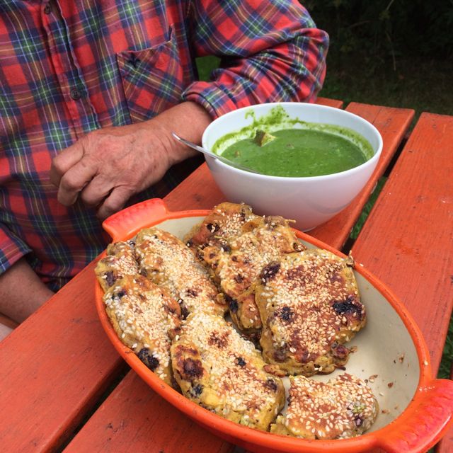 kryddor…… det var denna gång ajvan, koriander,kolonji, gurkmeja, svartpeppar, chilli. För att lyfta det, med lite syra, kom lite svarta vinbär med -eller så tar man citron.