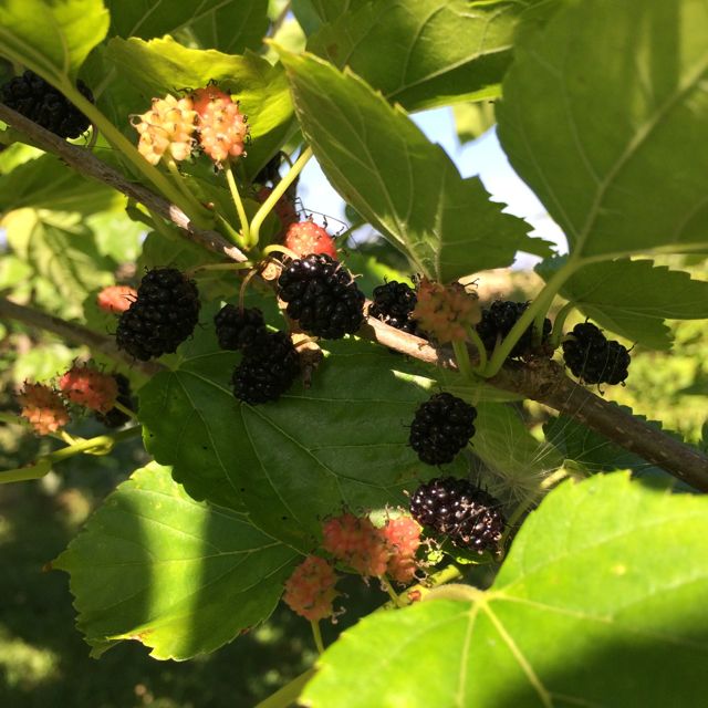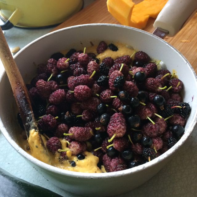 Mullbärs Plättar, stundens uppfinning. Men varför inte? Resultatet var gudomligt! Stora saftiga plättar med busig smak. En blandning av svarta mullbär och de stora mer fiberrik vita Mullbären blev perfekt.