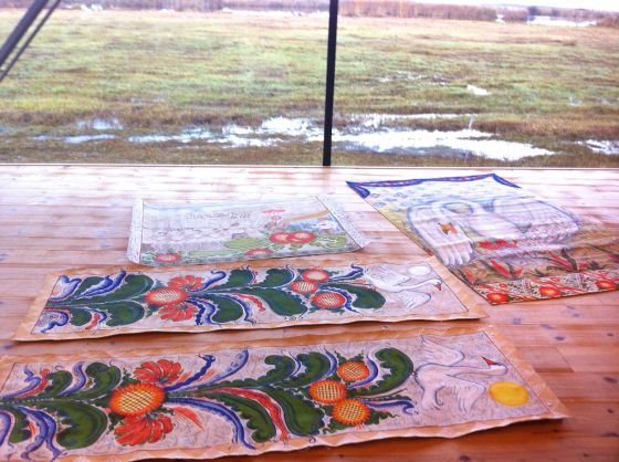 Numera håller varken jag eller Rurik kurser. Vi jobbar mest med vårt eget. Men till utställningen på Naturum Tåkern blir det ett undantag. Då blir det work-shops. Nu har du möjlighet att få måla bonader under Ruriks ledning, du med.