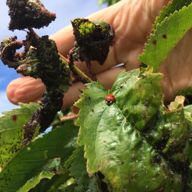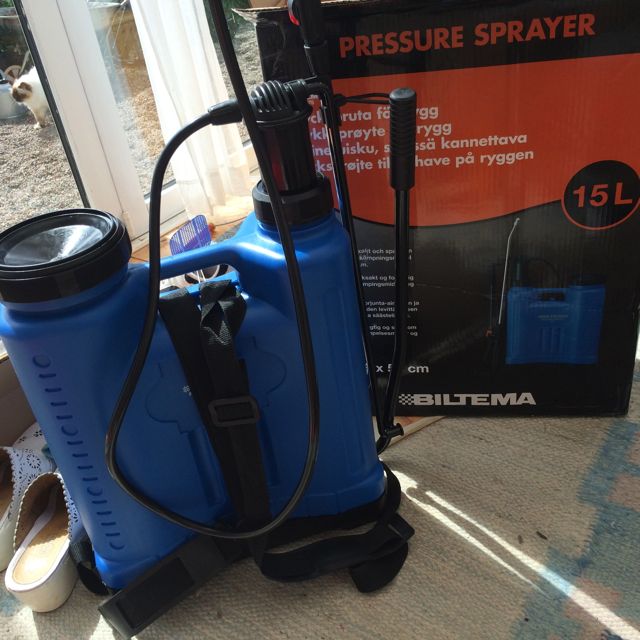 Vi laddar en blomspruta med preparat mot bladlöss B6. och mot spinn/ Kvalster B11. Sen la vi till lite extra kärlek i form av Devadroppar. Sådär ja. En daglig spray av blomstersprutan som har fått stått under bordet, nära till hands, när vi suttit här och druckit morgonte.