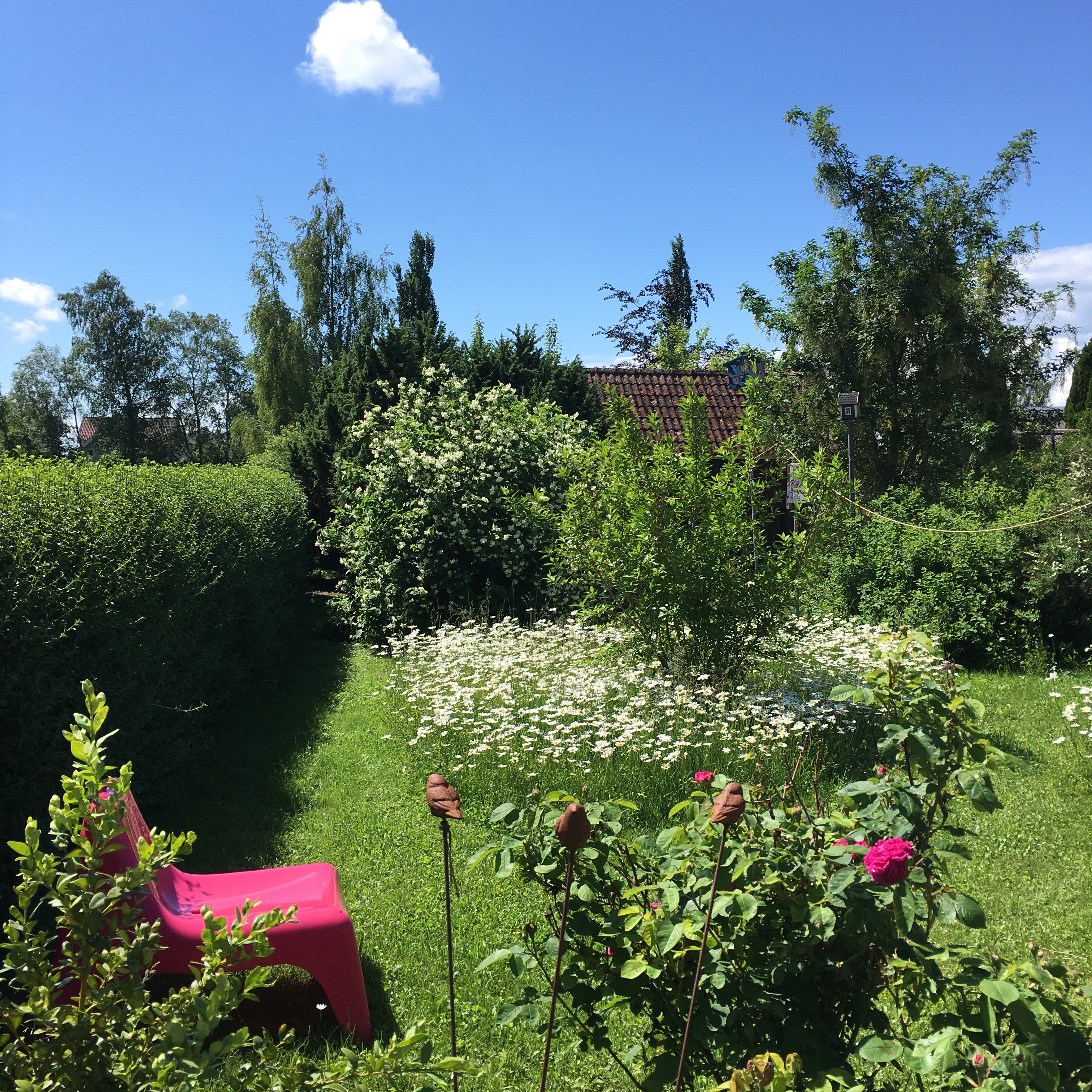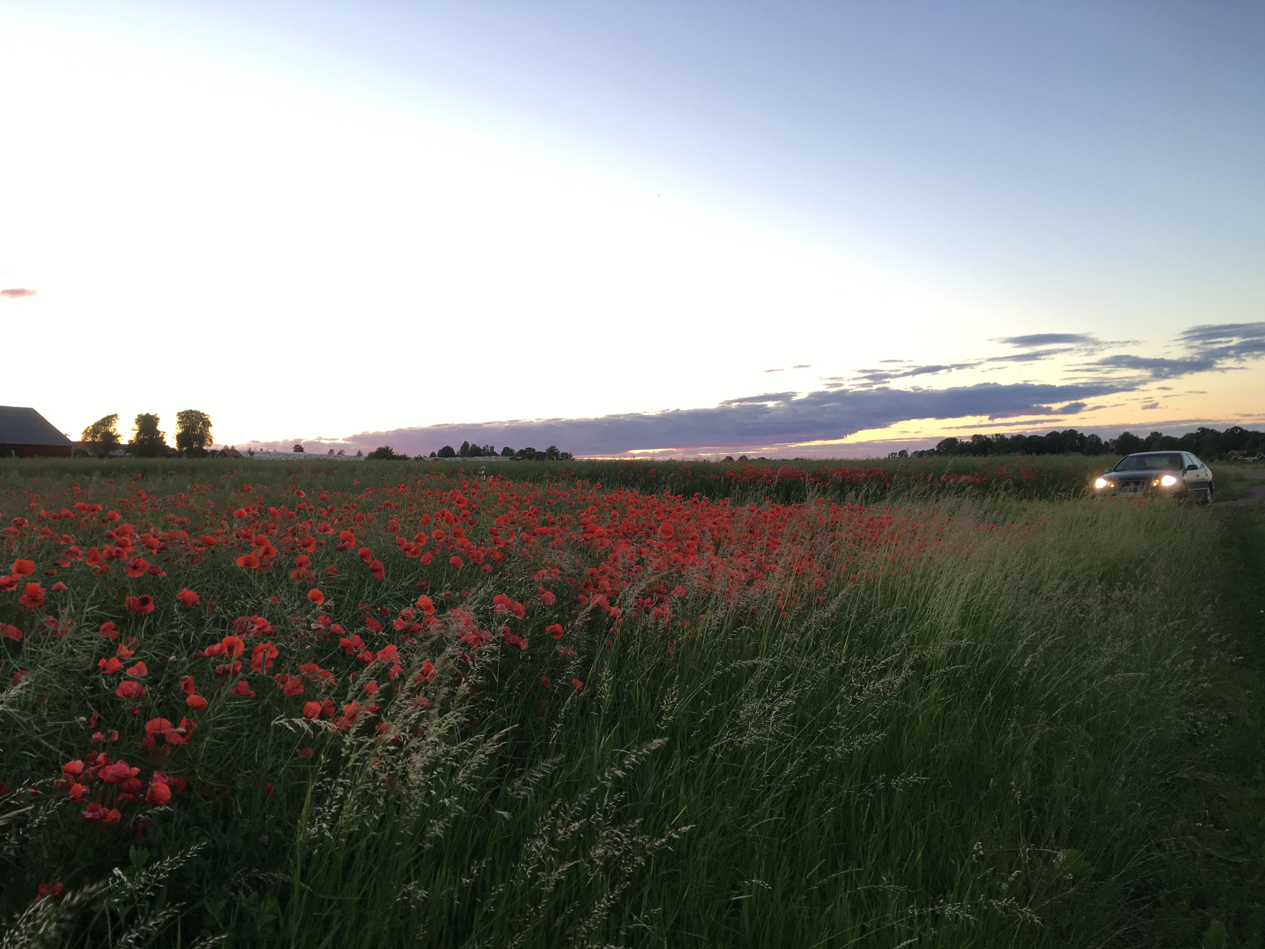 Sen åkte vi hem, Siv och Stefan kliver ur bilen och går en runda i trädgården medan vi fixar med maten.