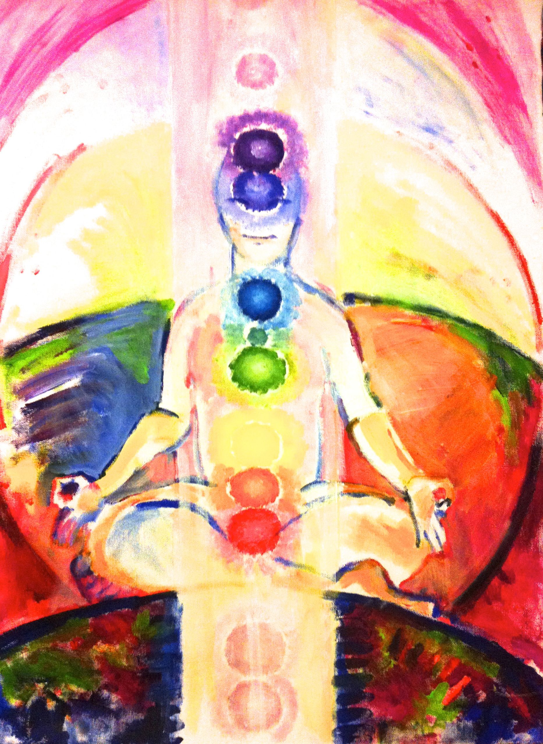 Vår kropp och våra energikroppar har massor av energipunkter, portar som tar emot och ger information. Där är ett ständigt energiutbyte och de kallas på sanskrit för chakras= hjul, vilket antyder att det är en rörelse. Även om man pratar om punkter så är de ändå ihopkopplade.