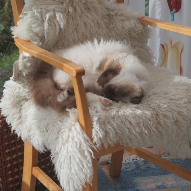 Katter är som dom är. Inte lätt att uppfostra dom inte. Det är nog lättare att uppfostra oss människor – vi lägger ut sjalar o lakan över de handvävda mattorna på kvällen, innan vi lägger oss. För när vi lagt oss lever hon ut ännu mera! Klöser i mattorna så trådarna viftar!