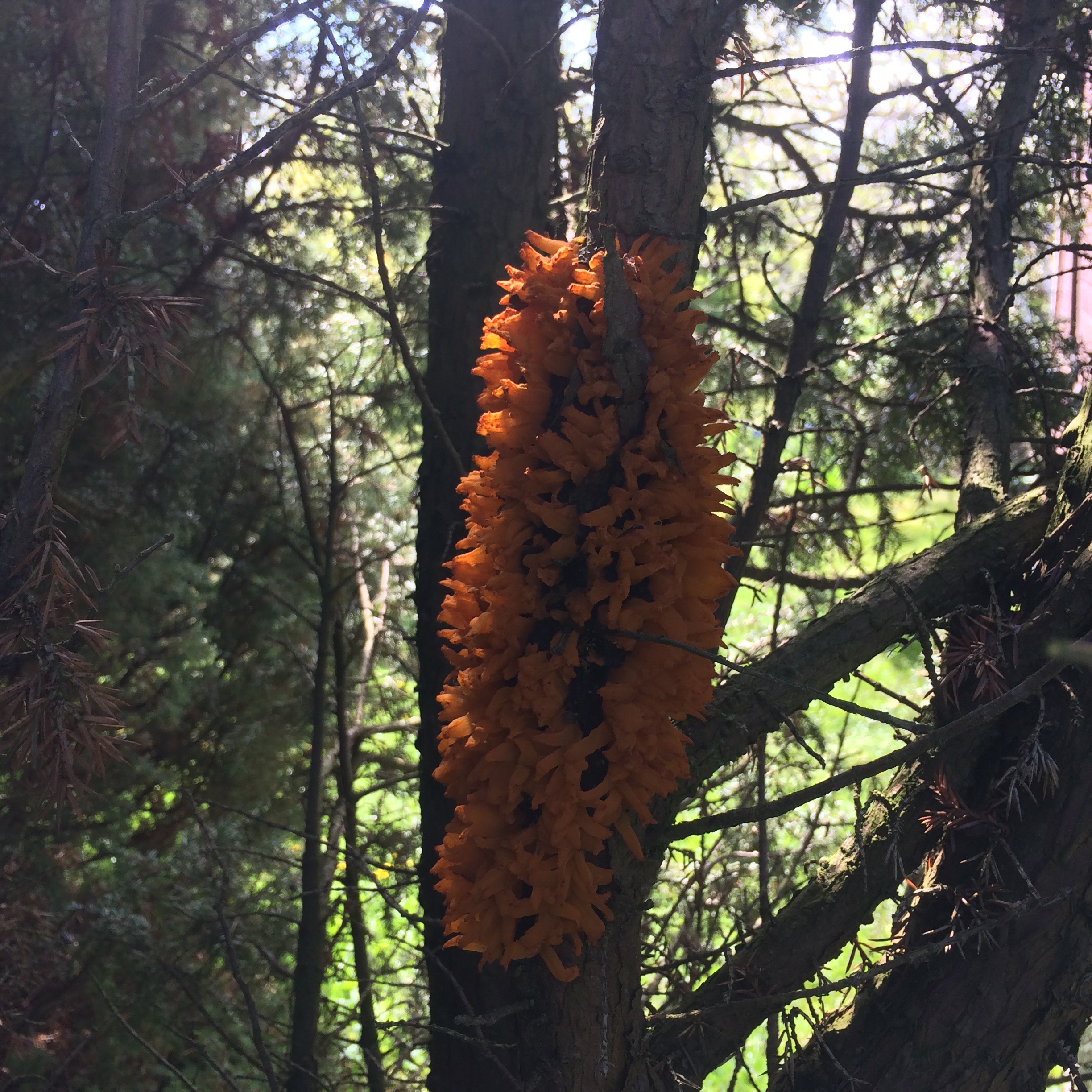 Till konstrundan brukar vi ju bjuda även på ROST, i form av rostig konst från Two Faces.(Vilket det inte blir i år, eftersom Rurik kommer att ställa ut i Hästholmen) Men nu, talar vi om annan rost. Vackert orangelysande i enbuskaget!