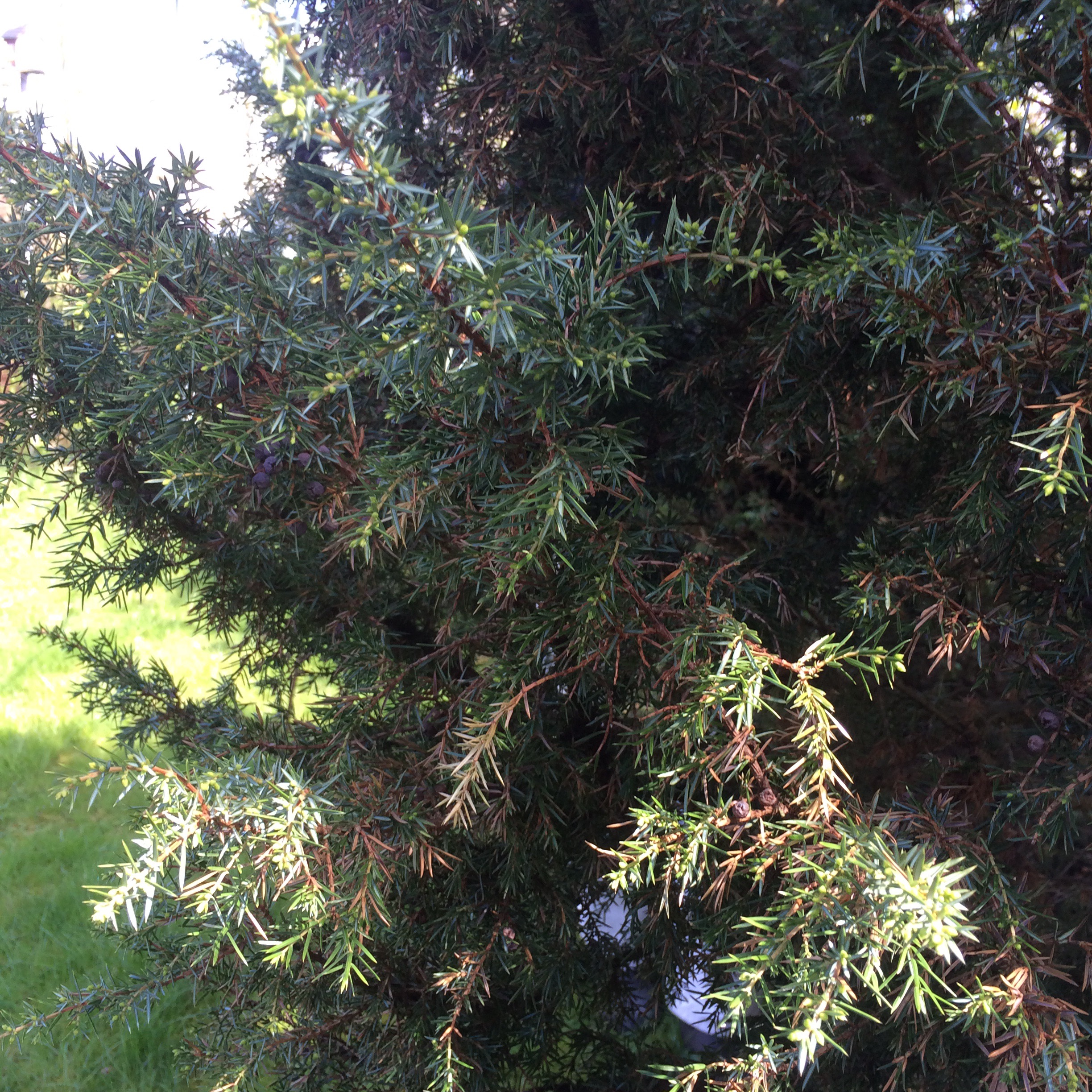 Steg ett, brutalsågning bland våra enar.. Steg två fram med de homeopatiska Mariadropparna! Eftersom det hjälpte mot rost-angreppen på rosorna, kan det nog hjälpa här med.