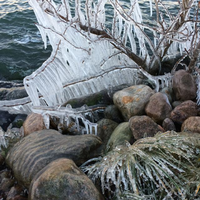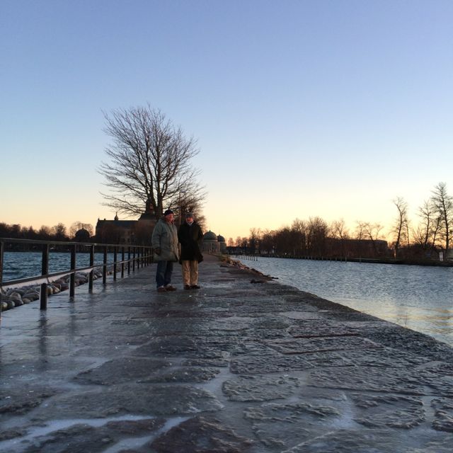 Vadstena har en strandpromenad. klart att det är där man ska gå, en sån här dag! Patrik som bor här, säger att idag har här varit fler promenerandes än en sommarkväll. Alla behöver väl gå ner jul maten. här är vackert, minusgraderna har skapat ismagi.