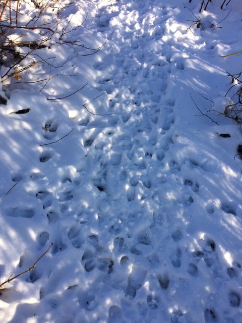 Men i vår trädgård, vad hände sen? Vi såg ju haren och tyckte vi visste ( vi tror fortfarande att den också varit där och mumsat). det blev kväll och vi gick in. I kvällsmörket hörde vi något skälla, och skälla och skälla. Men vi förstod inte vad som var anledningen, inte förrän nästa dag.