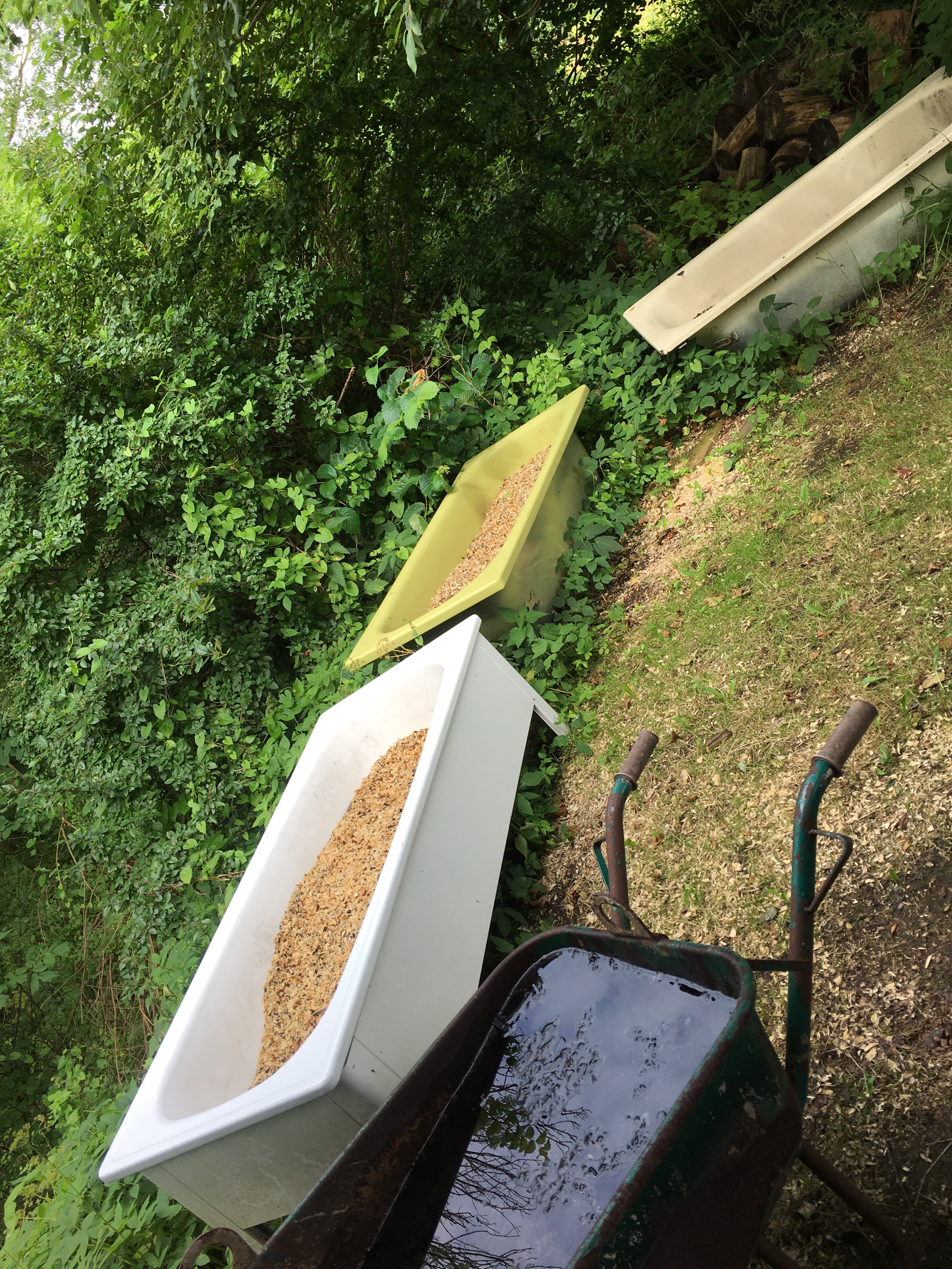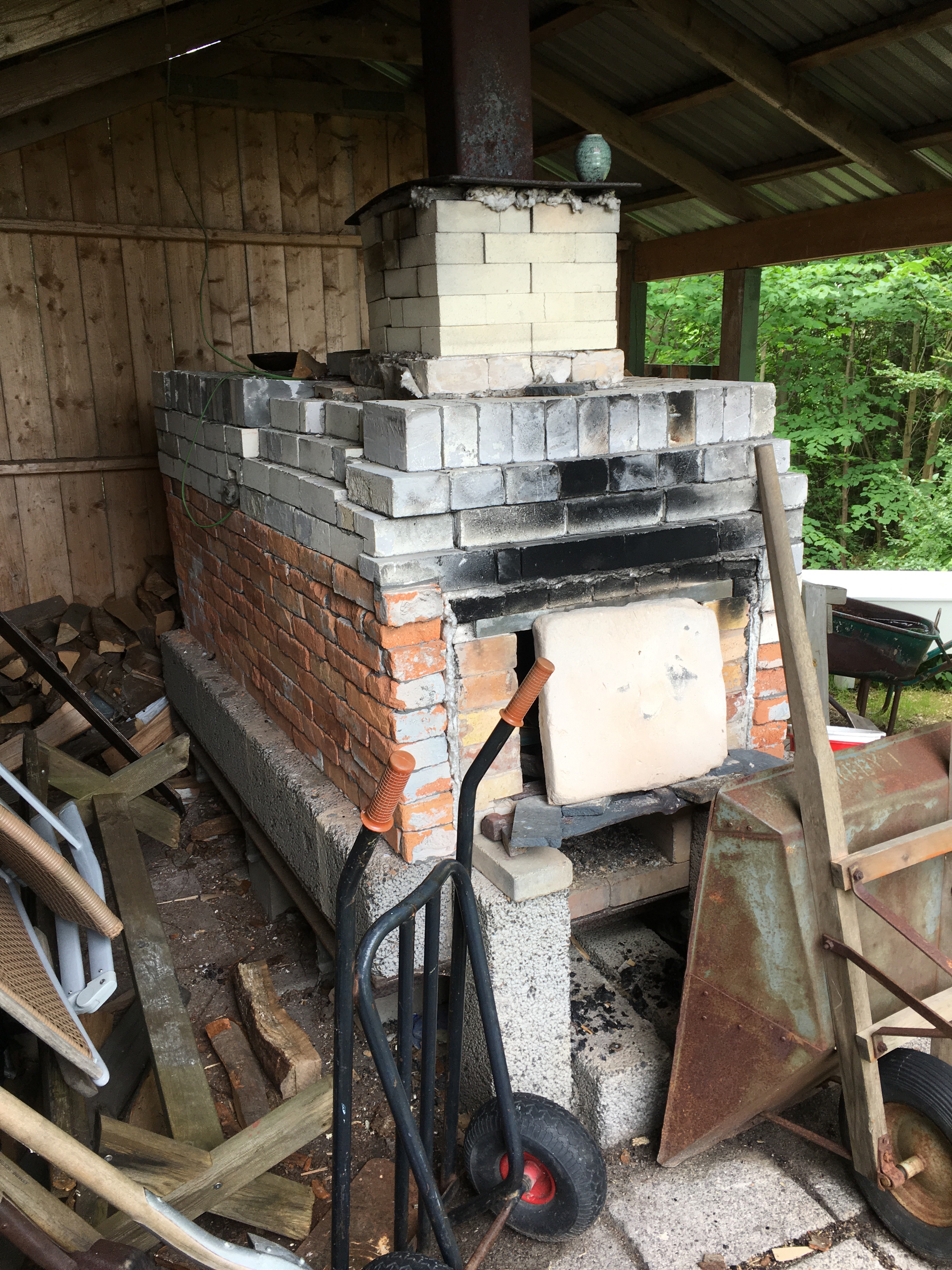 Se så idylliskt allt ser ut. Rofyllt och lugnt. Vi avtäckte både ugn och vedhög. Superglada att vi fått tag i en gammal kasserad ugn och tömt den på isoler-tegel (tack Kerstin). Nu minskar vi ugnskammaren.