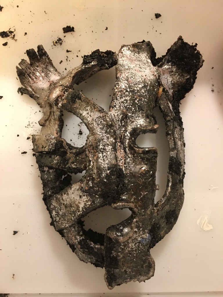 Nu ska det putsas med stålull och vissa klenoder kom ut som pussel, få se vad vi gör med det. Sen inväntar vi en ny dag som även inkluderar snälla vindar, så bränner vi återstoden av materialet. Här nedan, på filmen så kan du se lite fler av dagens sotiga resultat.