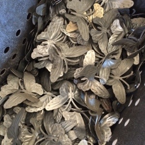 Förgyllning. OM vi hade varit rika som troll – så hade det ju varit riktigt BLAD-GULD. nu är vi bara små trädgårdsdevor och får nöja oss med slagmetall -som är billigare att hantera, men ger känslan av guld.