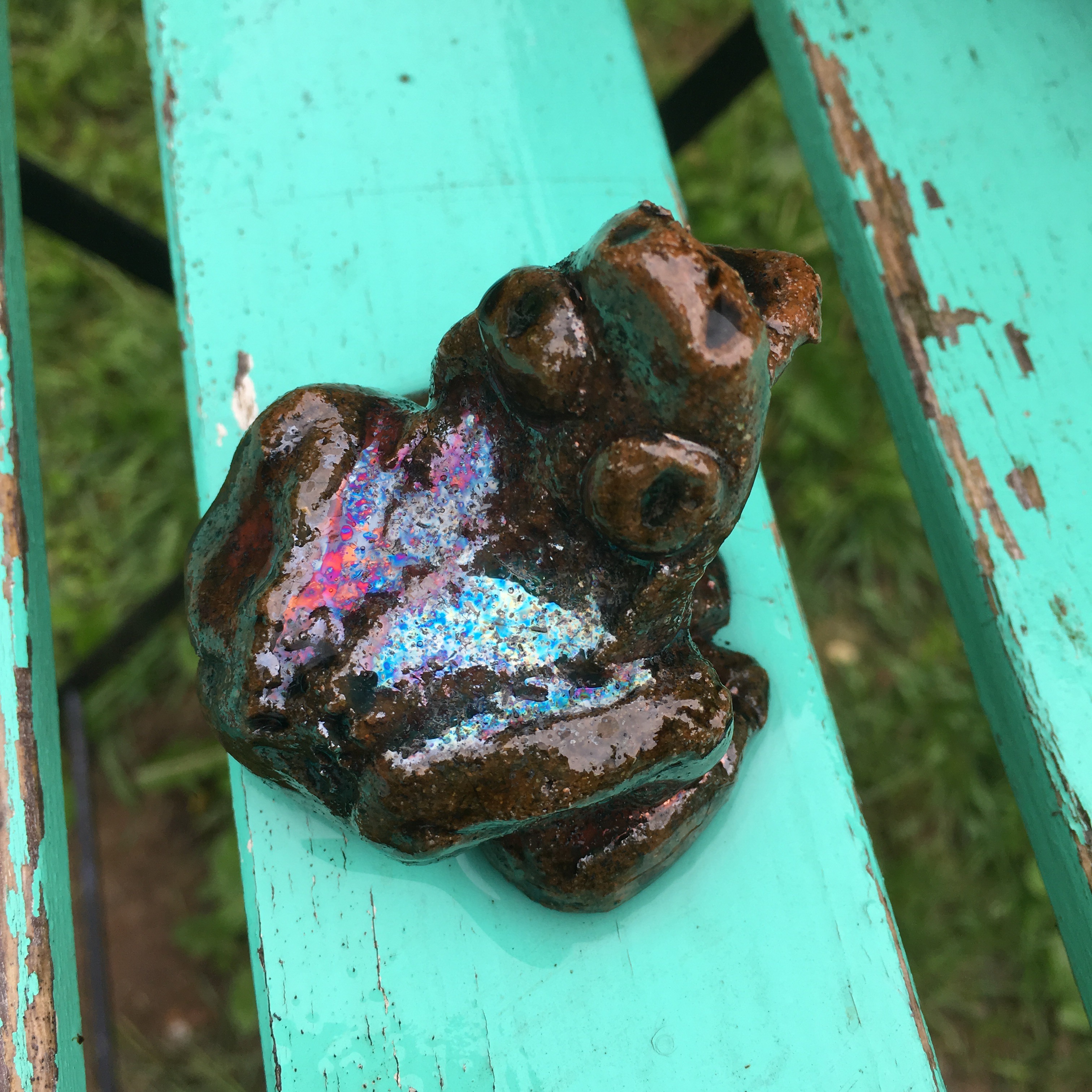 Nu höstar det till sig. På stenplattorna i trädgården hittar vi en väldigt liten groda. Alldeles platt och torr. Ledsna blir vi, för antagligen är det vi som har gått, med fokus framåt och inte sett den lille. Då var det fortfarande varma dagar och som ett minne låg den där torr och berättade sin historia.