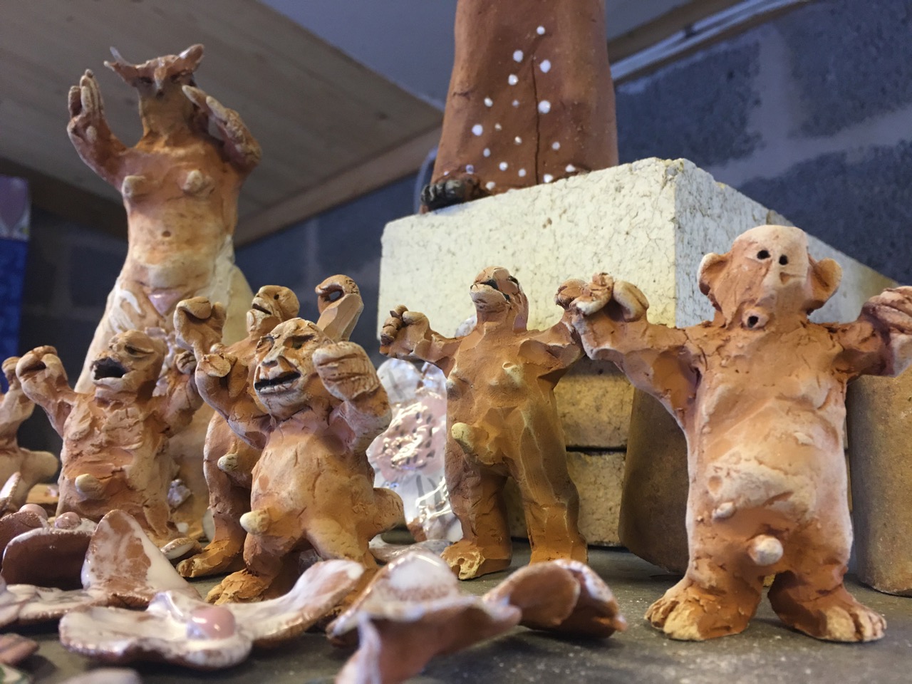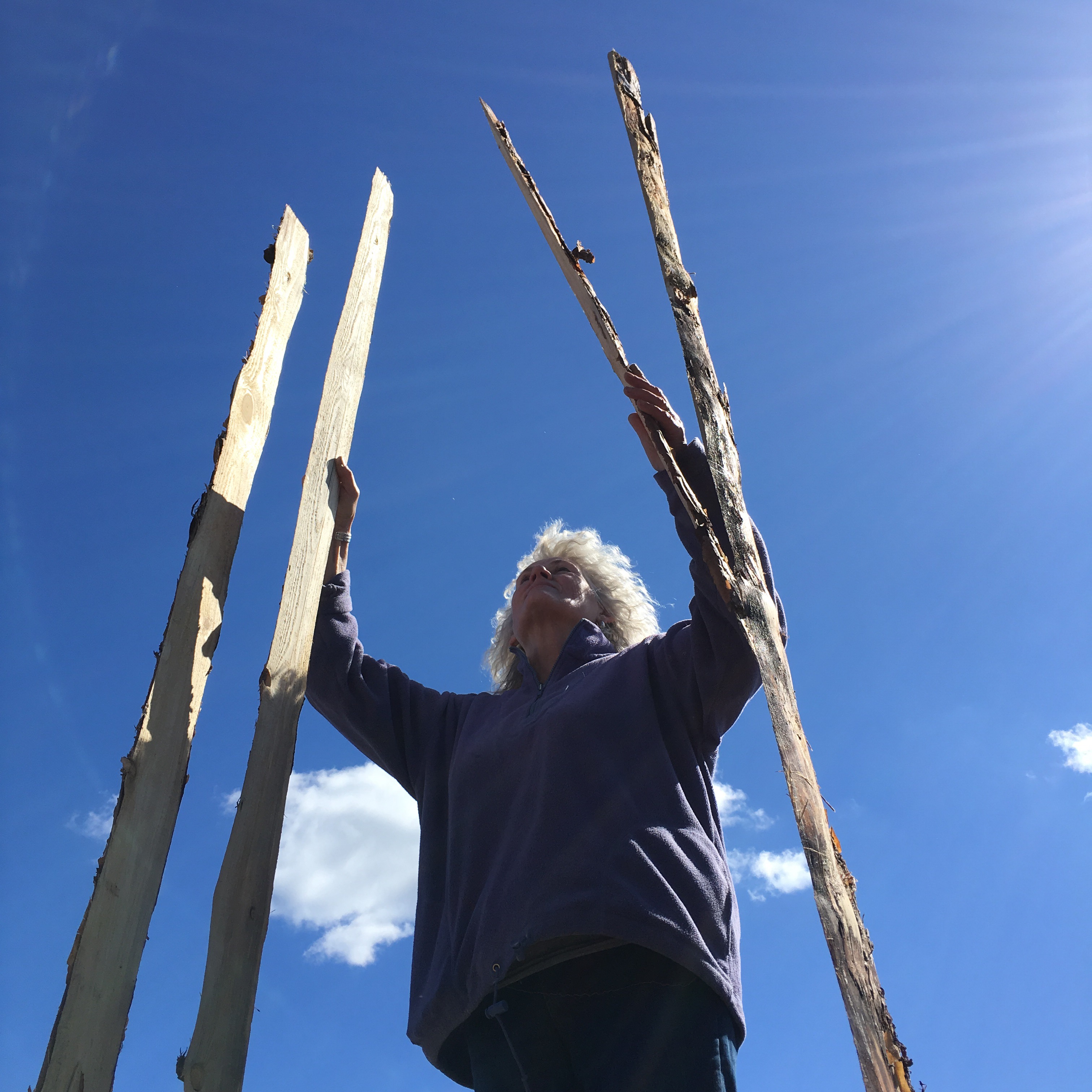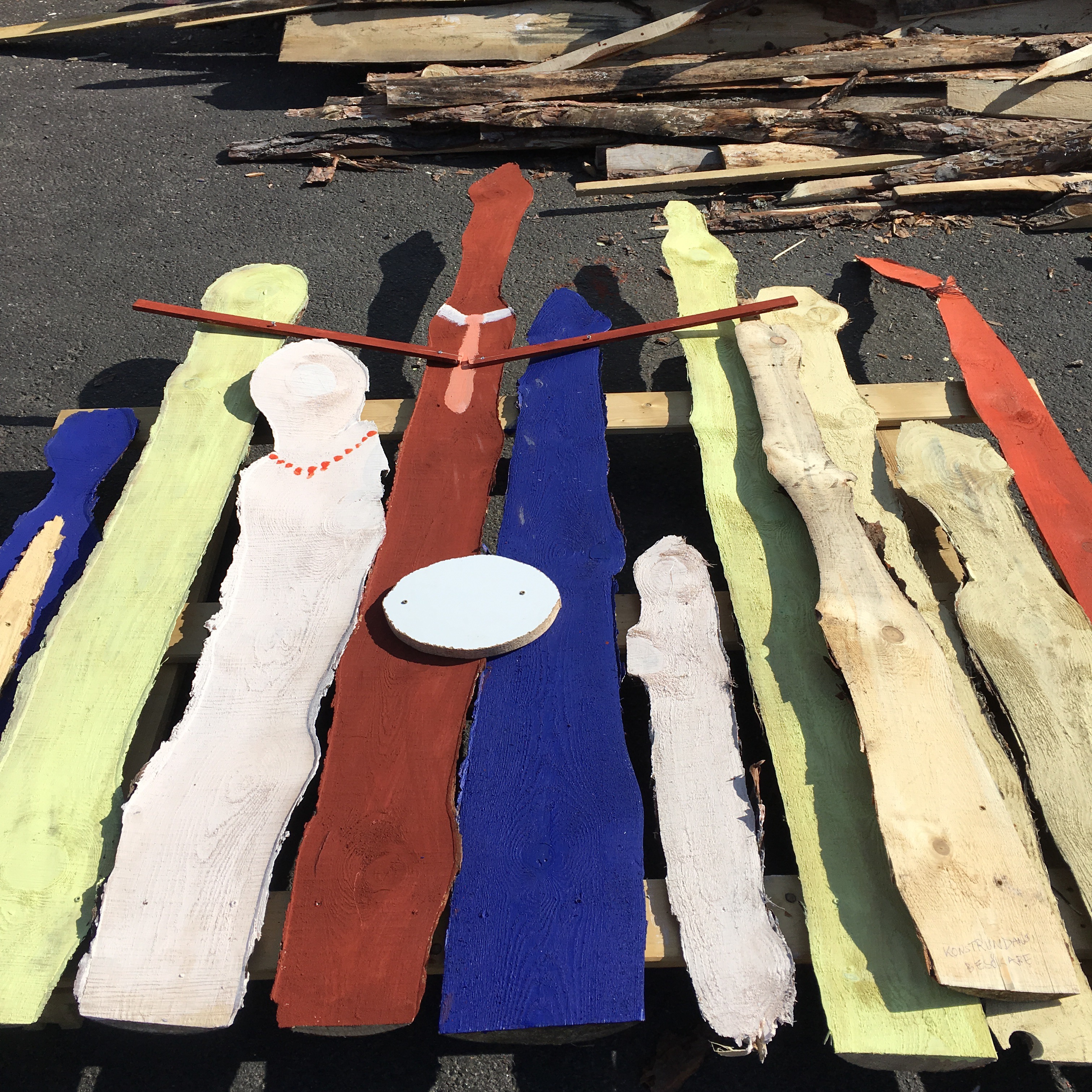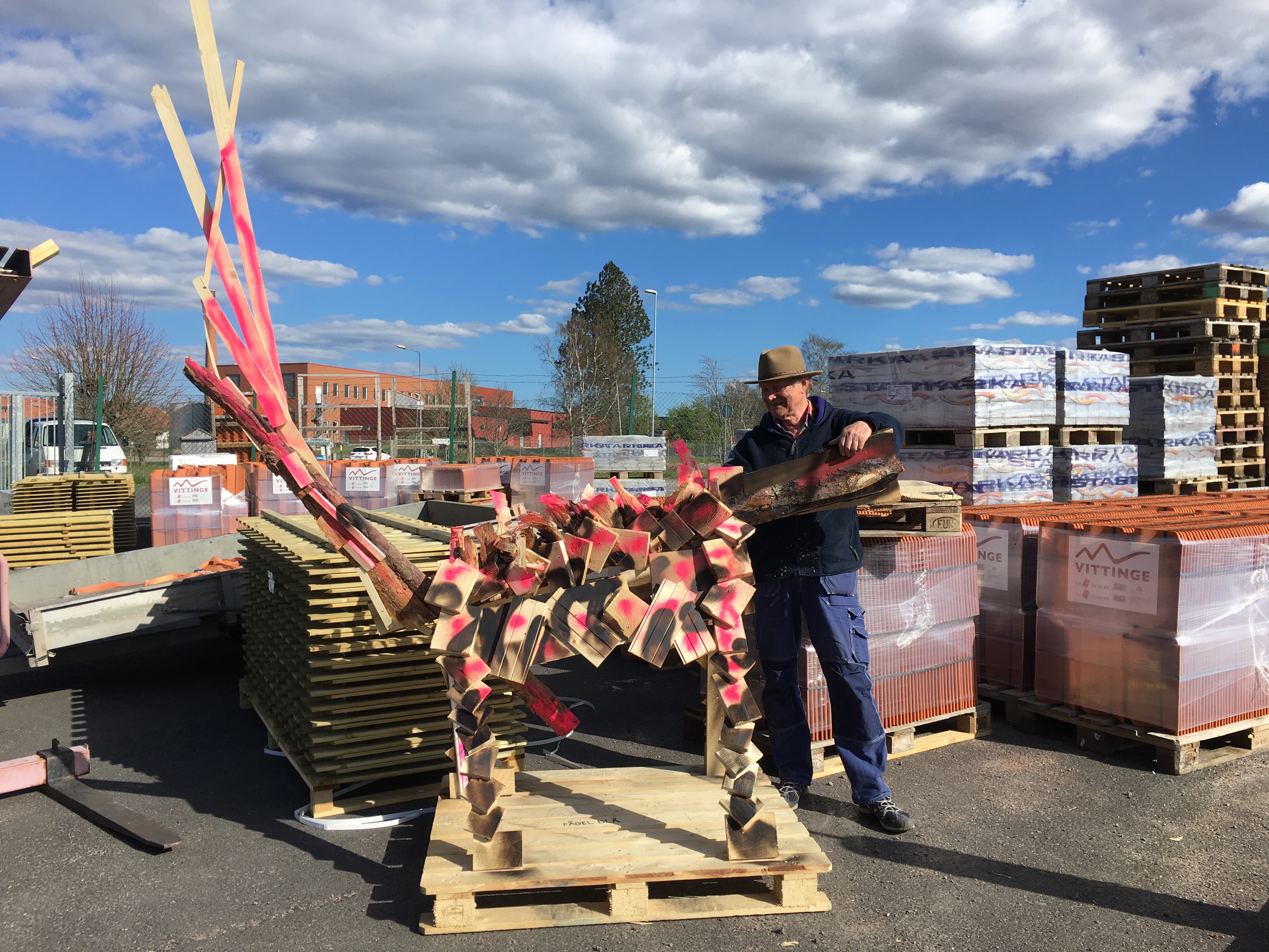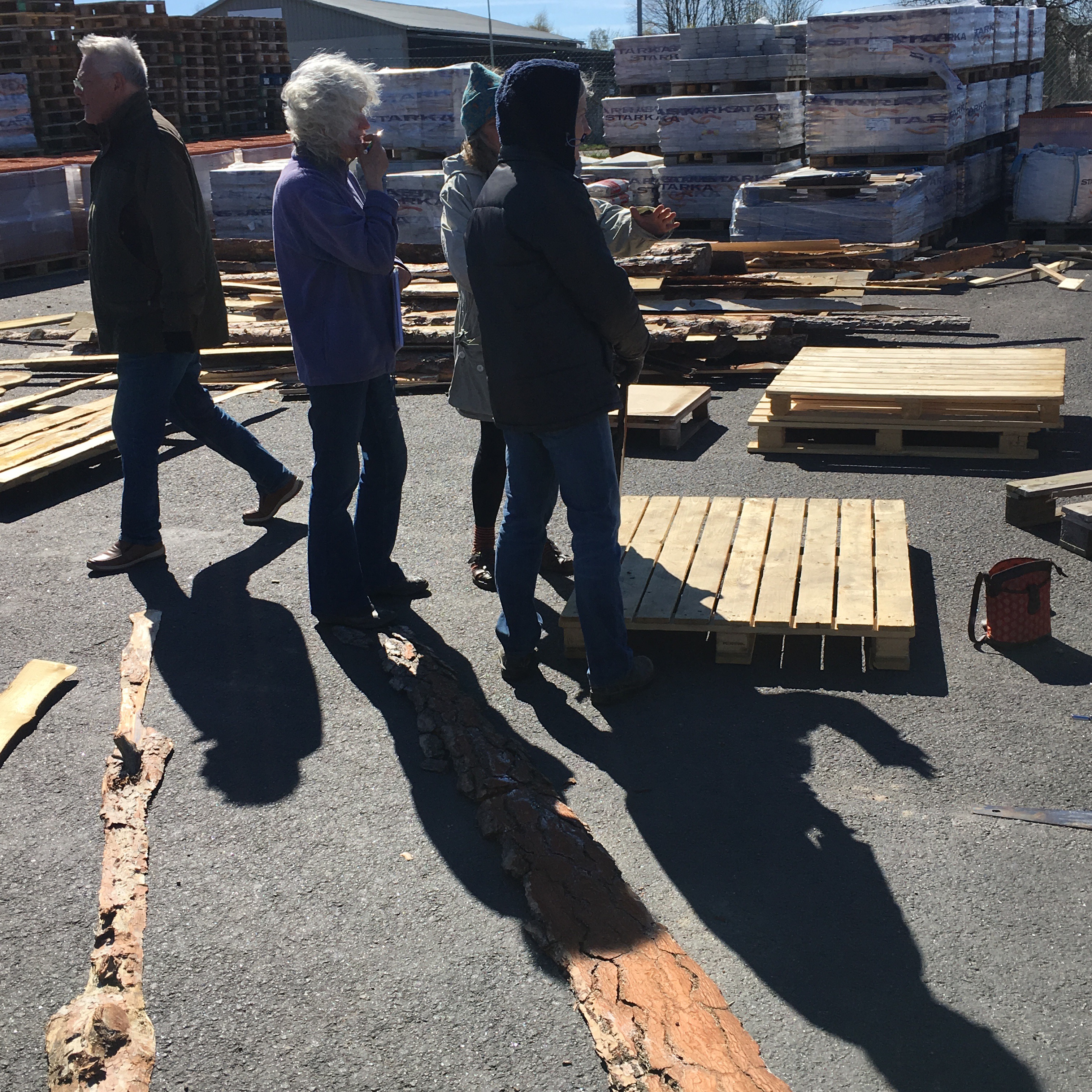 Här sitter Ganga och ser så himla nöjd ut!? Tro väl jag det! Efter en hel dags skulpterande -i trä. Hela Omkultur är inbjuden till Bolist i Ödeshög att arbeta med spillmaterial. Så roligt! Ljudet av skruvdragare har låtit hela dagen.