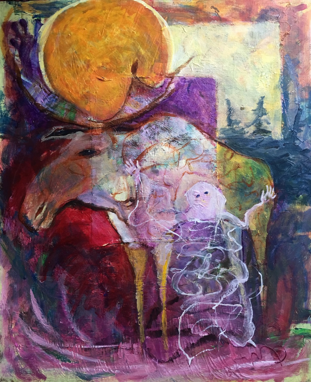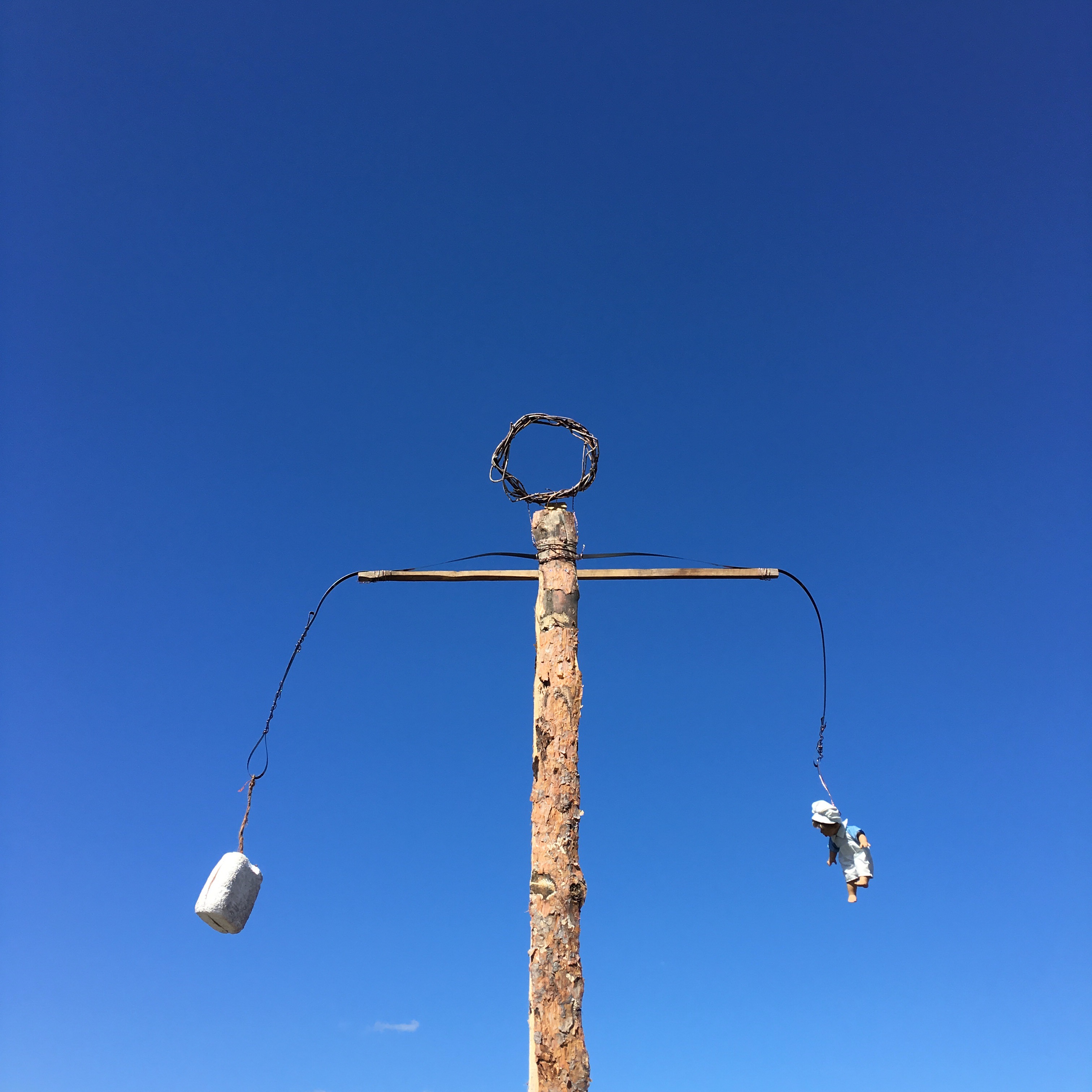 En djupblå planka blir Vätterns vatten och över den sträcker sig Vaginan mot himlen, en guldmålad cirkel -en klitta, eller en måne , har hängs upp. Det blåser och tröttingen kommer. En del är klara eller väljer att fortsätta imorgon.