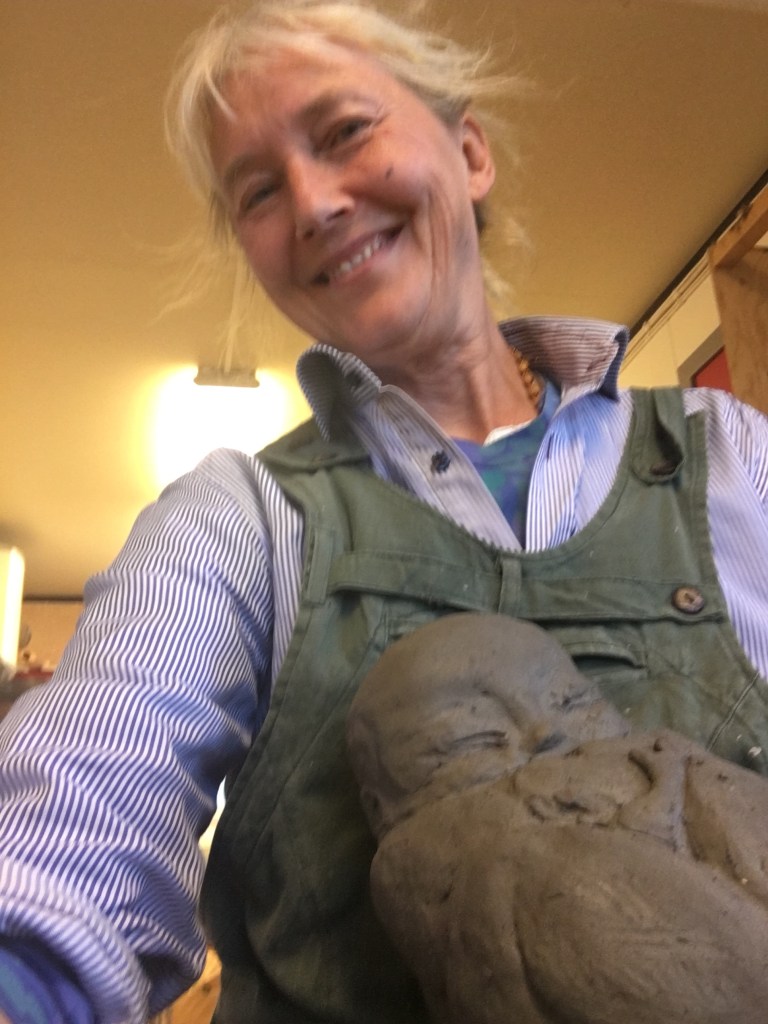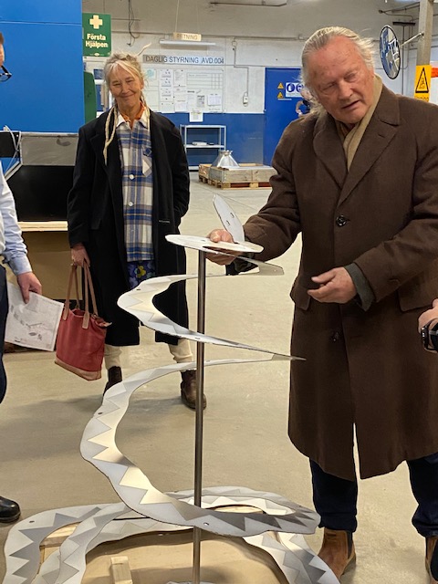Det gjorde vi bra! Tack för gott samarbete, Karin o Ganga som var kvar, skakar hand. Skulpturerna lär bli avtäckta till konstrundans start, Kristi Himmelsfärds helg.