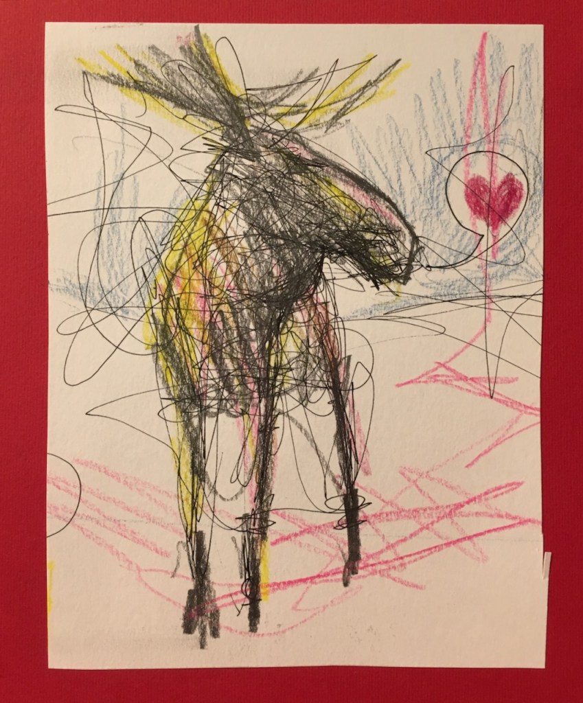 Men Rurik har byggt en Urskogs vilddjur ! Den står med raggen upp och ser ut som kraften själv. Sen skriver han namnet, med lagom klurig Rurik humor ”fågel Blå”. ”-Det är väl ingen fågel!” Säger någon. ” den e inte blå i heller…”