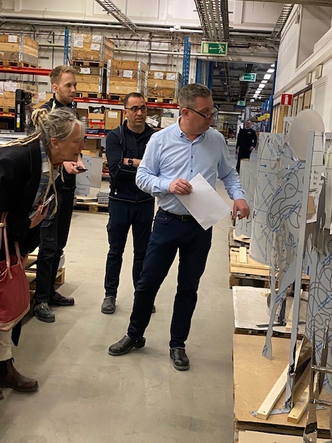 En grupp människor – ”konstrundebesökare” säger Sören om sitt verk.