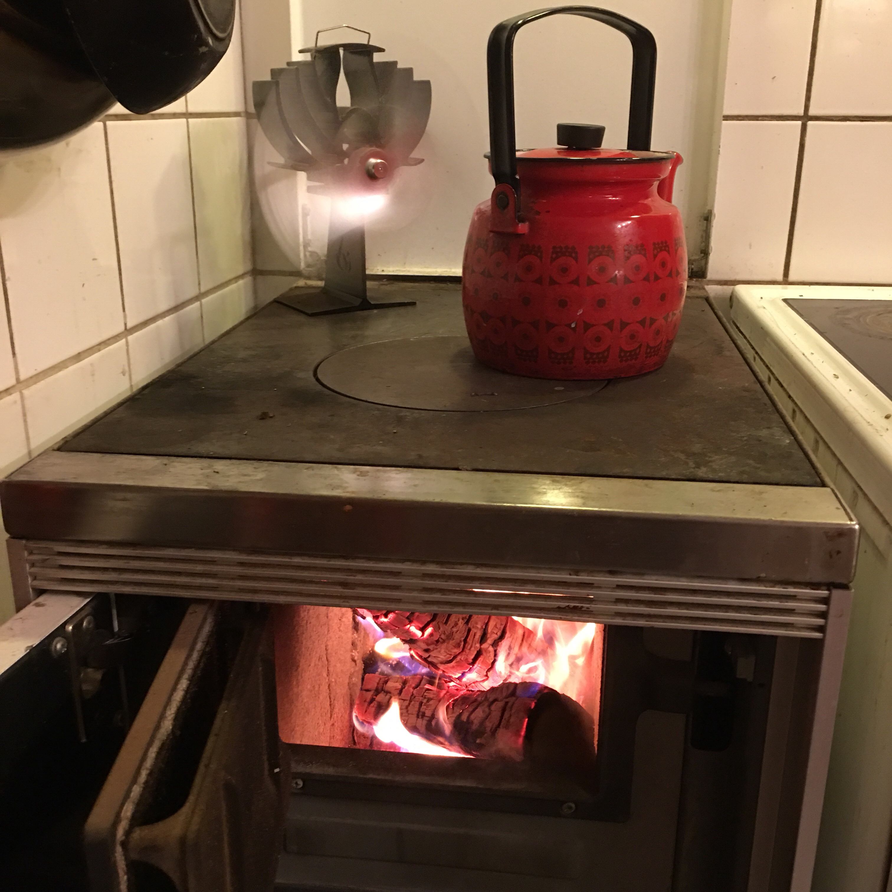 Men det är kallt. Vi lovprisar vårt flit, att vi fyllde vedlagret. Elden knastrar mest hela dagen. Det är härligt. Älskar och bo med eldstad. Det är en vidunderlig livskvalité att få sitta vid en eldstad.