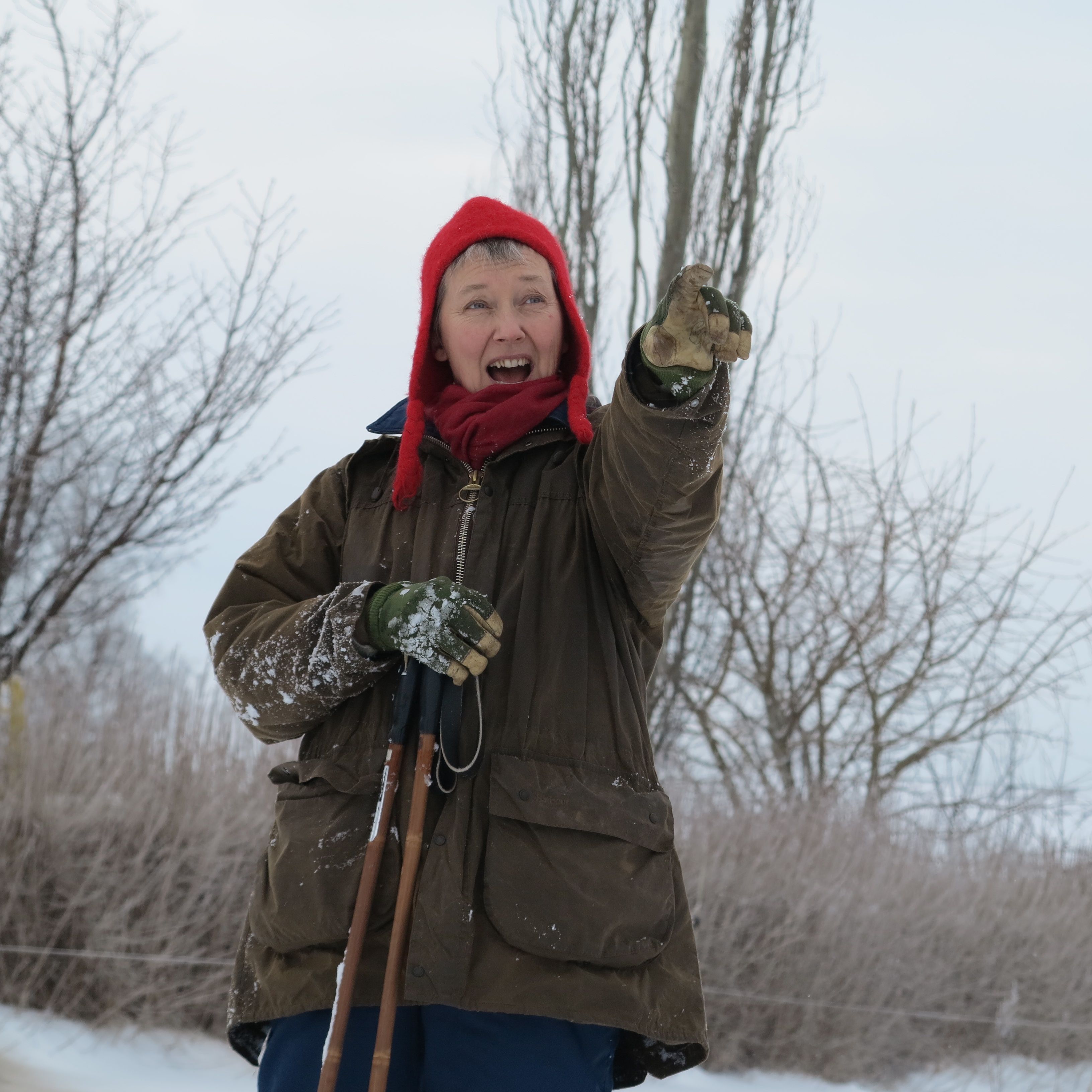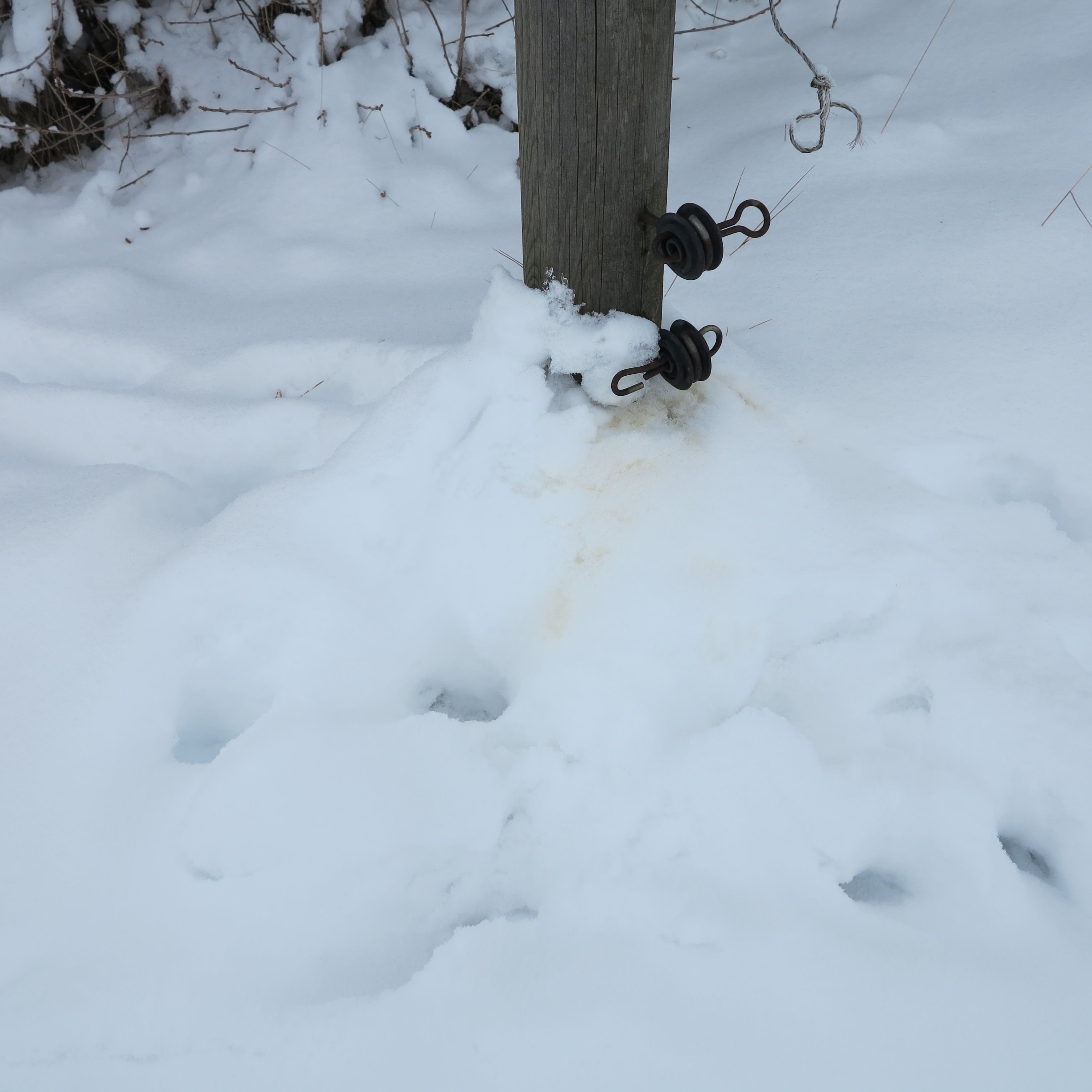 Rurik är hane, hans doftspår blir nog bäst. Jag väntar och Rurik sätter revir. Det blir gul snö.