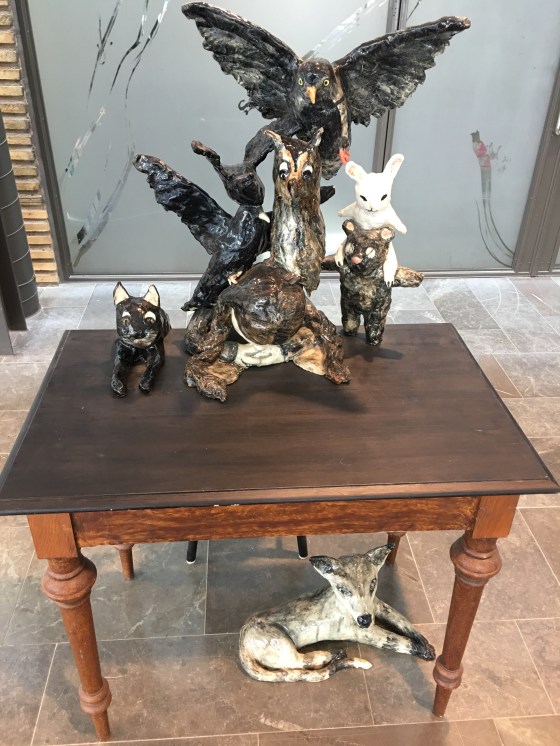 En chimpans som står o kräker. Efter besök hos kiropraktor blir det en sväng till Bonniers lokaler. Visserligen är konsthallen stängd idag men deras andra lokaler är öppna. Jag välkomnas in, här är mycket konst. Spännande.