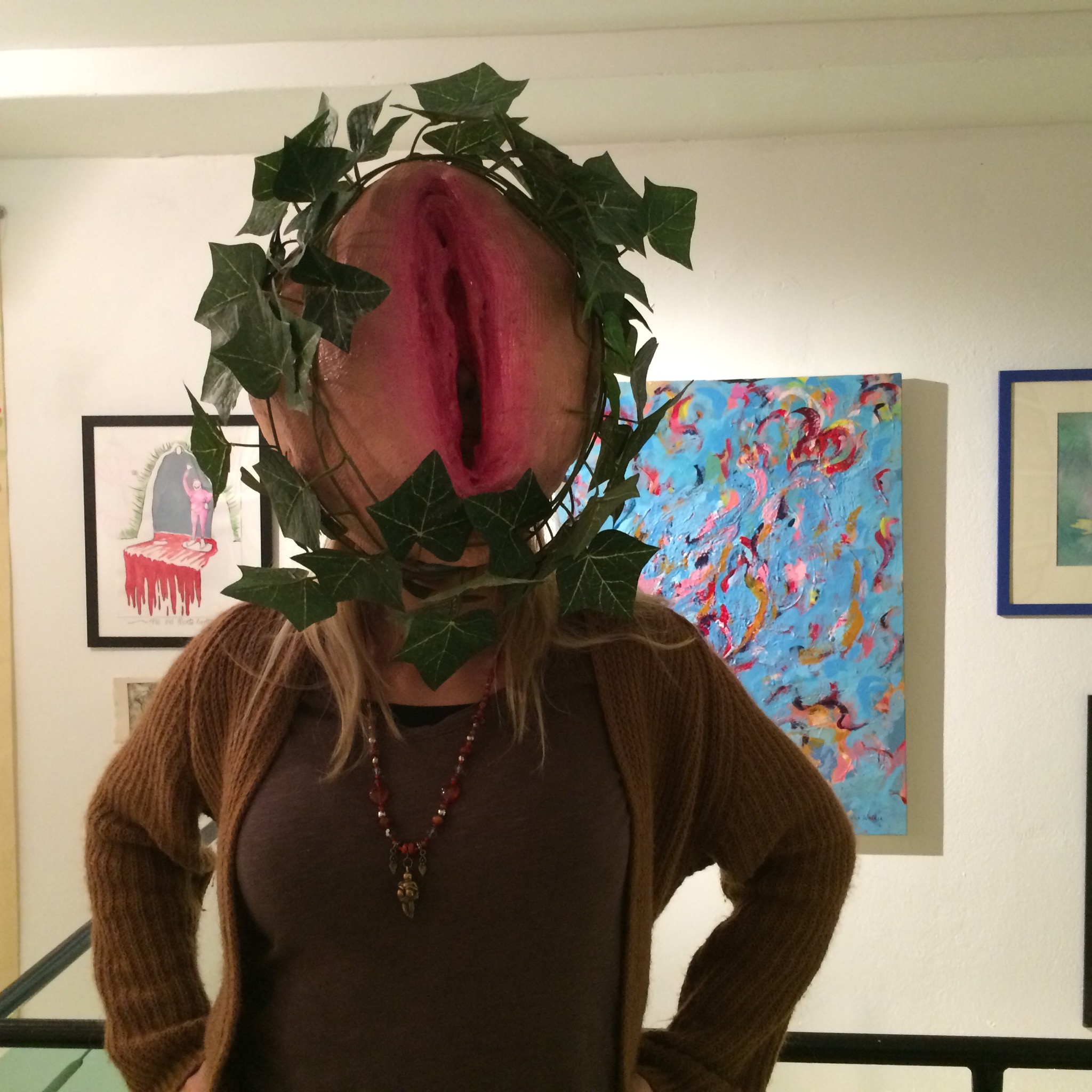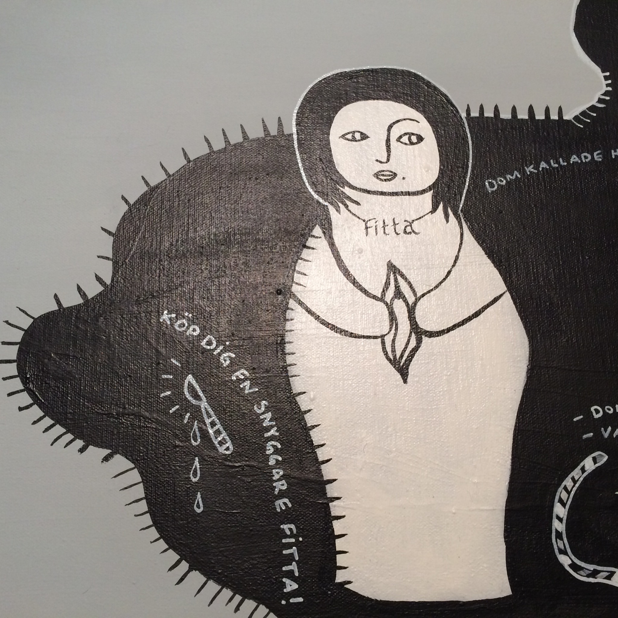 Förresten är bilden inget Fitt-huvud, det är en donations-Fitta – alla bidrag emotages tacksamt. DonationsFittan ska inte sitta på Ylvas huvud, det var bara i slut-för-dagen-buset som den hamnade där. Den ska stå prydligt på ett podie så att man kan stoppa alla sina stora sedlar i den.
