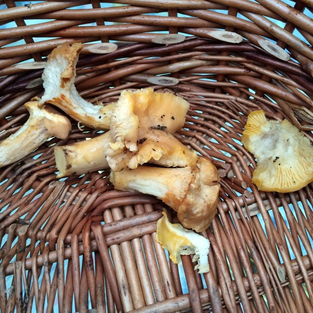 Kantareller!! Stora och kraftiga. Vi får massor. Jag ser lika lycklig ut som Siri ( hoppas det OK med bilden, Siri? )Men visserligen är kantareller kända för att de oftast går fria från angrepp av skogens små invånare, men sniglarna hade ätit hårt på dem. Minst hälften var redan uppätet. Men varför klaga när det blir 1,4 kg rensad svamp. Storfångst i skogen.