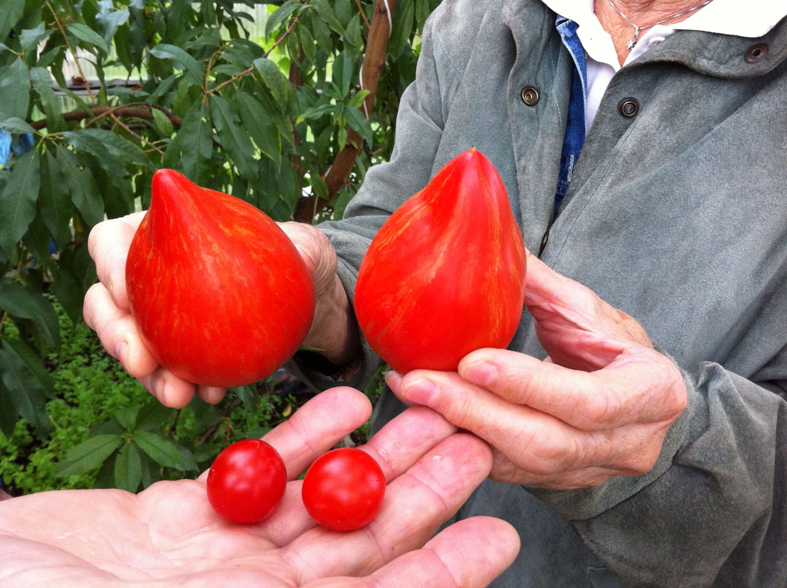 Här i min hand ligger årets sista egenodlade tomat. Ända fram tills nu har vi levt i ett ständigt dignande överflöd av tomater. Vi kommer att sakna er! Nu får vi ändra menyn, mer kål, äpple, potatis och pumpa.