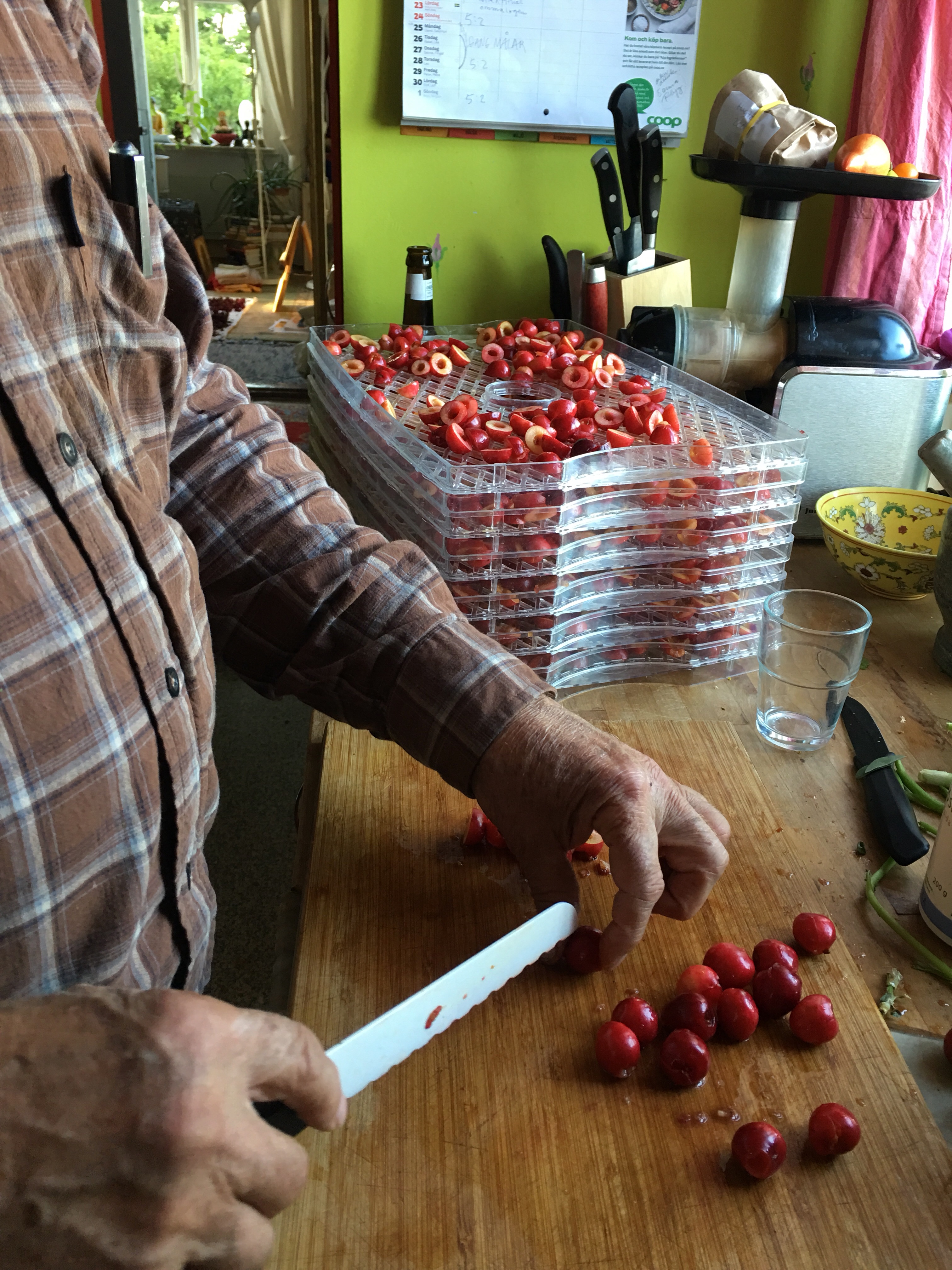 Det går inte fort med potatissättningen. Hosta och snor hindrar oss. Vi måste pausa o återhämta oss också. I frysen hittade Ganga fläderblomssaft. Perfekt.