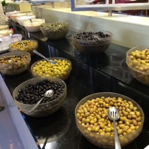 Vi har en lägenhet med typiska stengolv. ( alltid ha med innetofflor när man åker till Medelhavet) märkligt artistiska väggar… vita kluttar. Jaha?